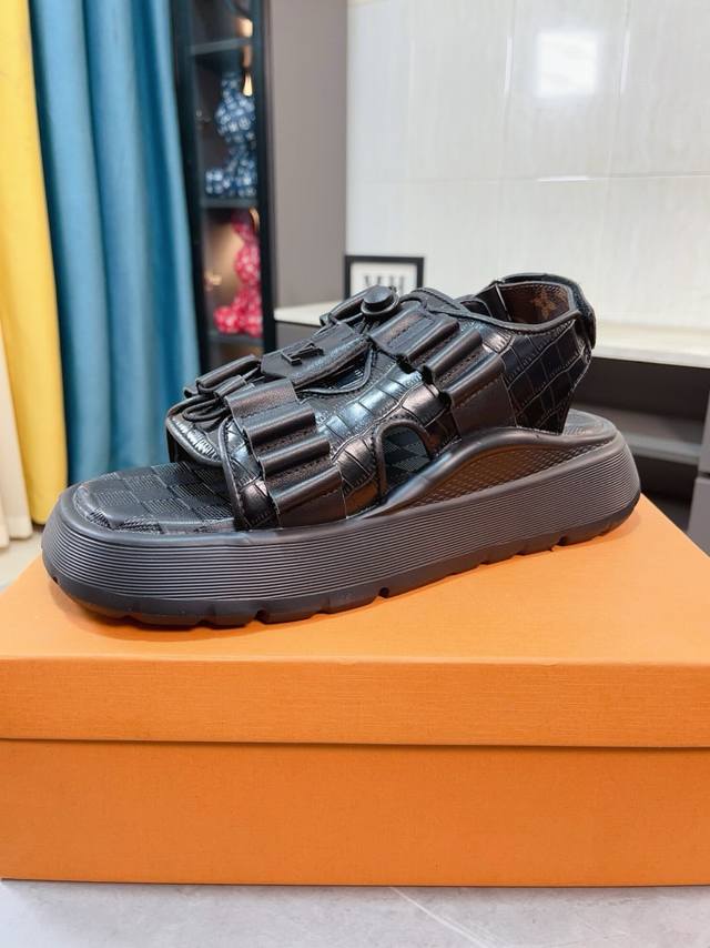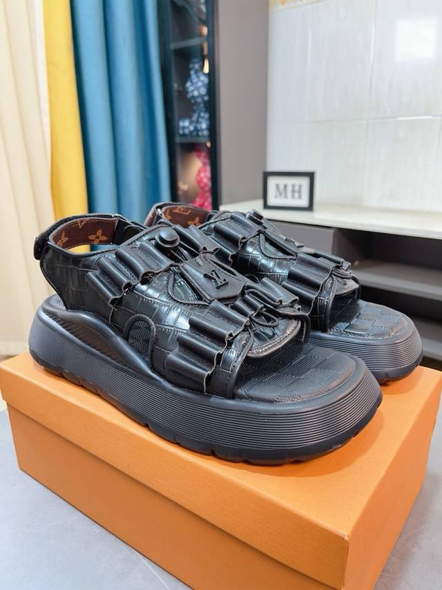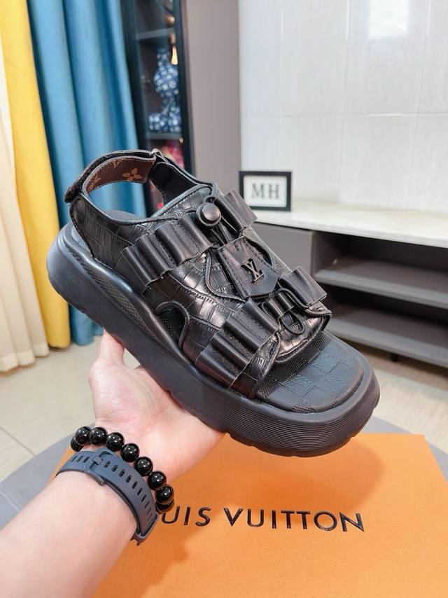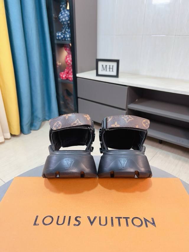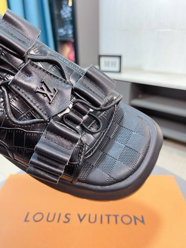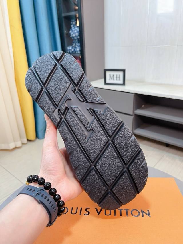 / 出厂价P 2025新款 情侣款 Louls Vultton 路易威登~独特现代风凉鞋。 Lv专柜代购男女休闲拖鞋,专柜同步发售,原单老花料鞋面柔软舒适, 拒绝脱