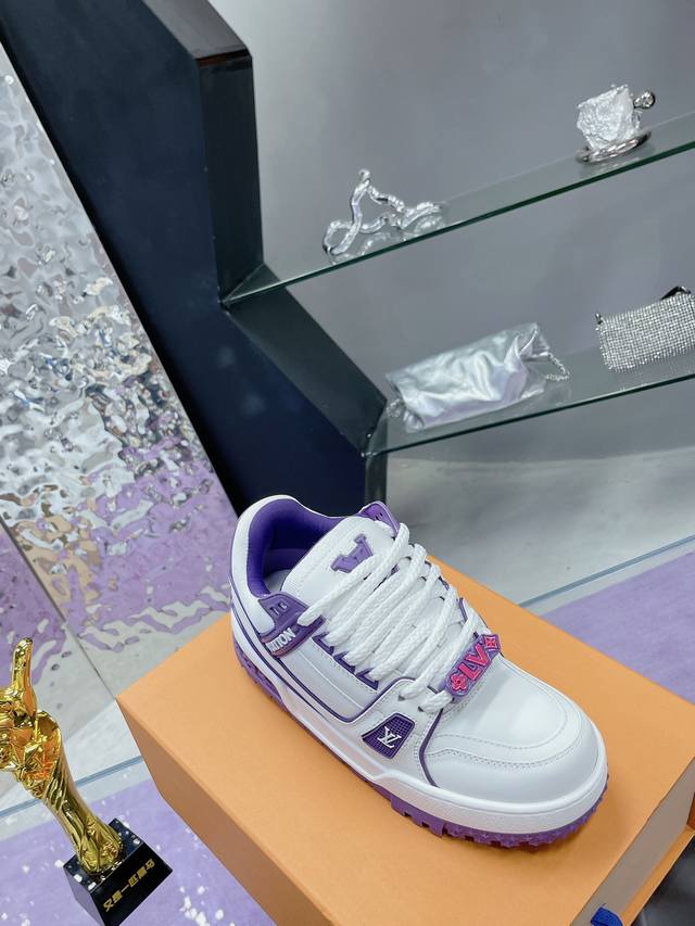 出厂价P Lv胖丁 新颜色 目前此版本只做Zp上市的 最高还原所有细节 、包装 Lvtrainer小胖丁 最新升级版本 原版一致 独家开模 市场天花板级 欢迎对比 对版私模大底 大星星颗粒 区别市场单薄的小星星对版饰品级扣子 扣子开模了一个月才定版! 每一个扣子都光滑不粗糙,晶莹剔透的质感!鞋腰对版做了松紧带 更能护好脚踝 提高舒适度,区别于市场货。中底布 是虚实相间的 独家打印效果 避免一眼假! 码数:女35-40 男39-45
