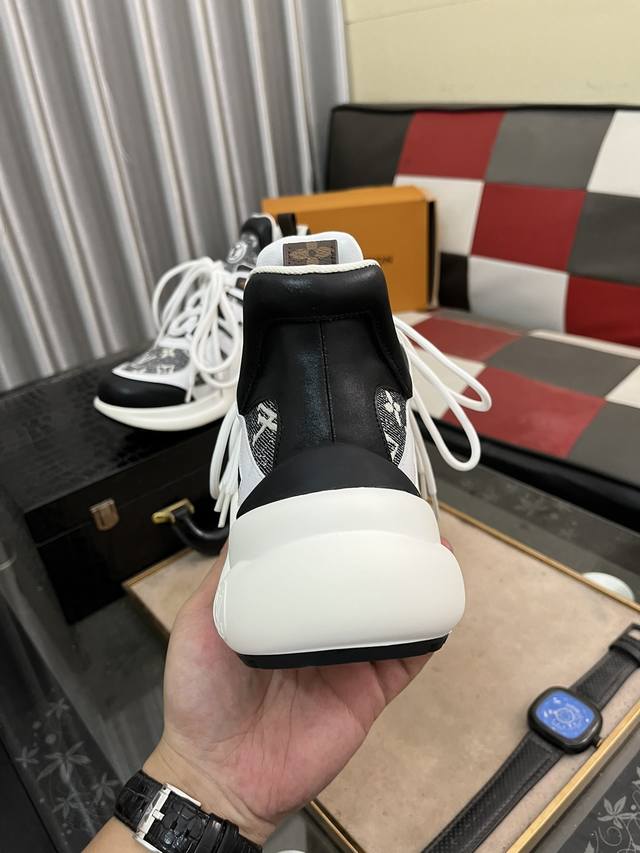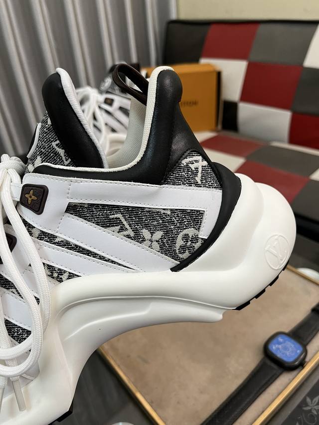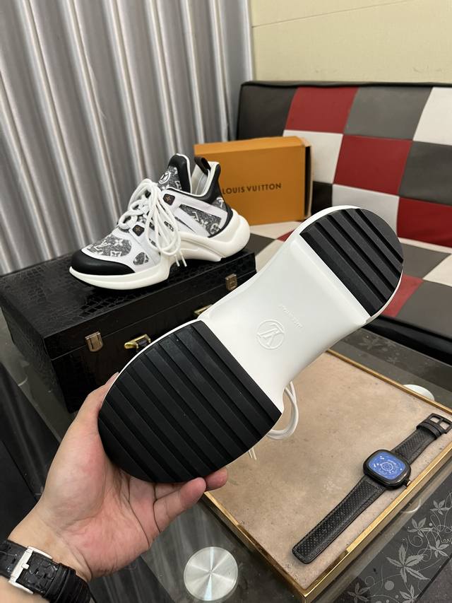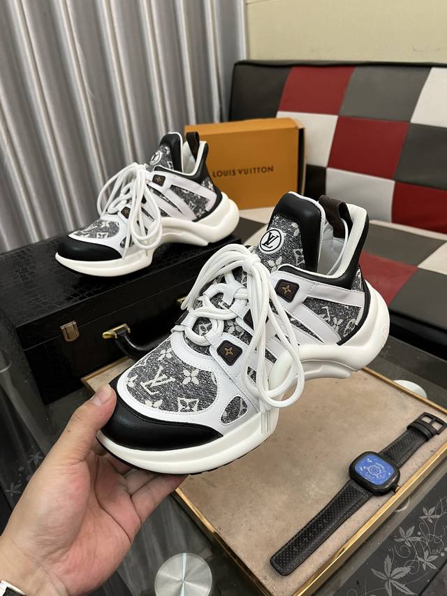 出厂价pp: 顶级版本 新款Lv花式熊猫扣子款 Archlight 驴牌五金休闲运动老爹鞋后增跟高约5.5Cm,大底最高度厚约8Mm...