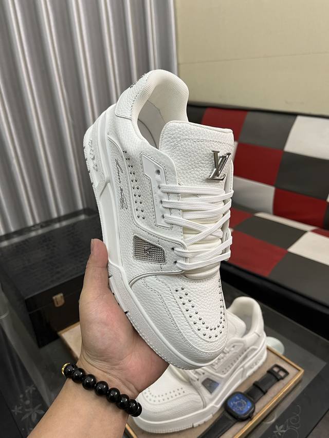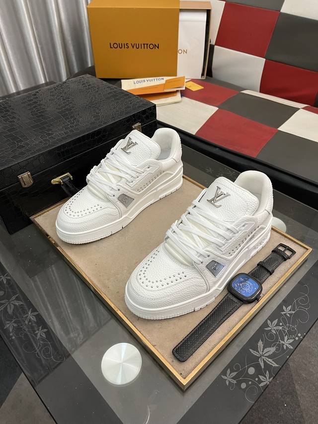 出厂价pp Lv 情侣装休闲鞋2025Z柜同步发售 码数:女36-39 男38-44 45 46订做# 2个颜色鞋面选用多材质拼接网布内里 舒适透气 鞋底 原版