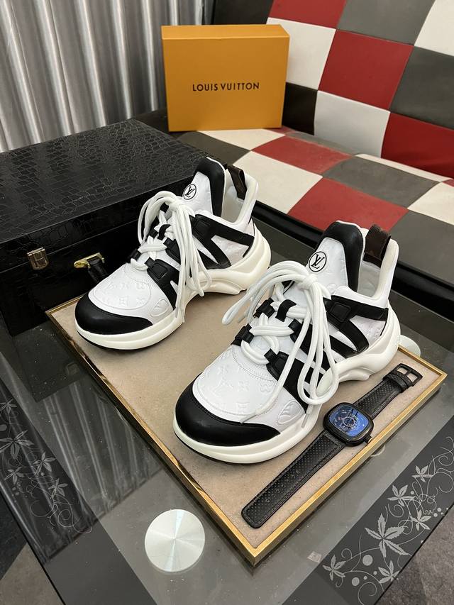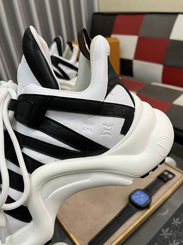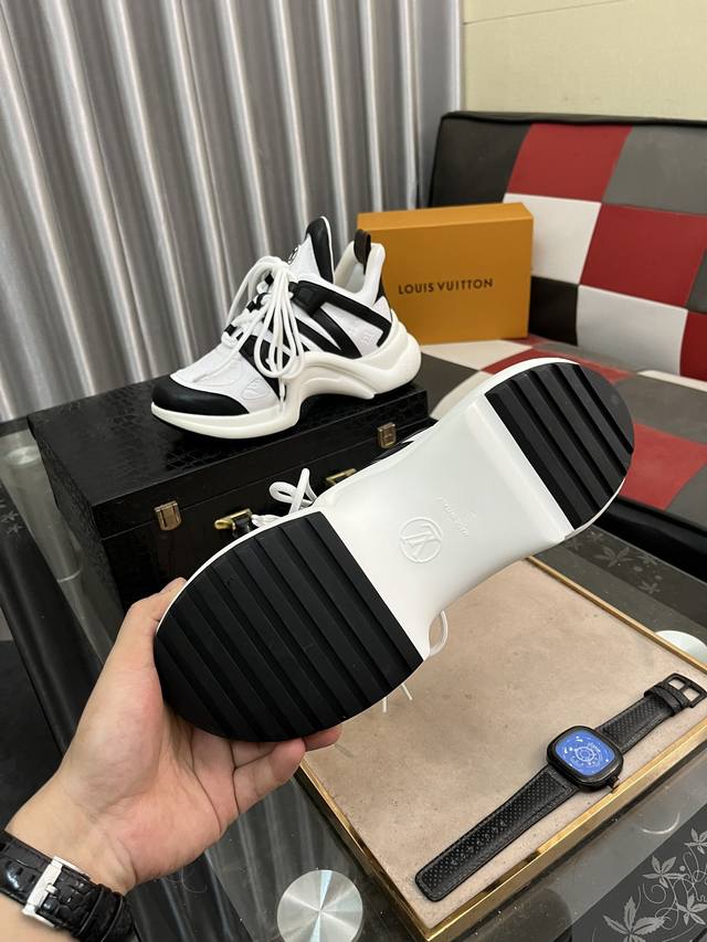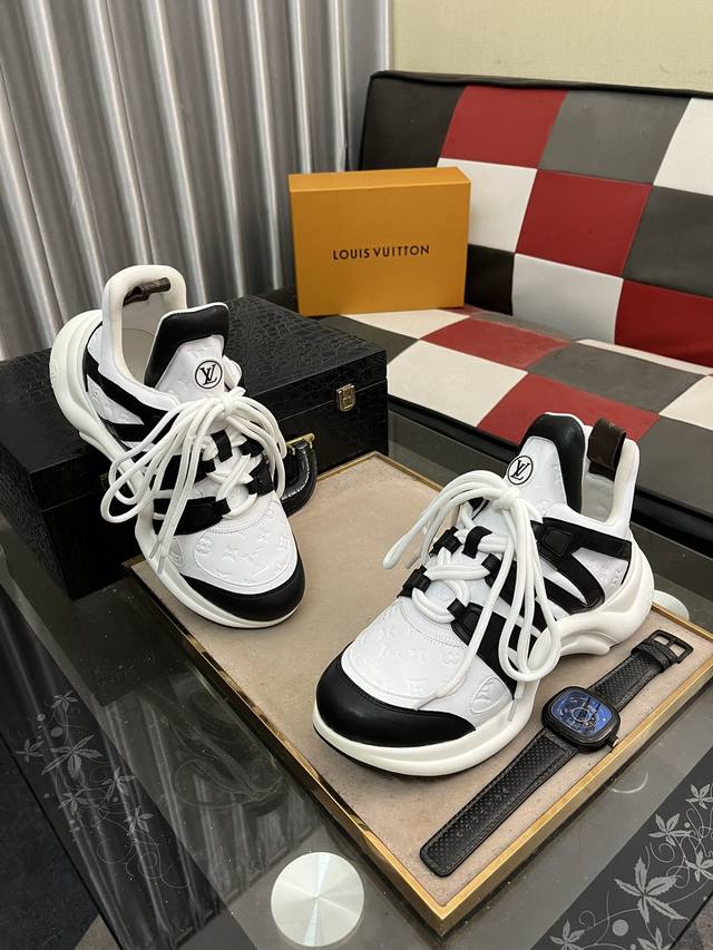 出厂价pp: Lv Archlight Sneaker 拱桥系列运动老爹鞋 Ddd 驴家拱桥老爹鞋充满未来感的运动鞋以弹力十足的拱形外底搭配醒目的大尺寸鞋舌与低帮构造,突显细腻的女鞋风格。”所以,也是因为其拱形鞋底、轻盈设计而得名。 Ddd 这款有着夸张拱形外底、充满未来感的Lv Archlight运动鞋,如今算是红遍大江南北!Lv老爹鞋是公认最显腿细的美腿神器,巨百搭、轻盈舒适,经典的拱形设计上脚立刻增高5Cm,着实圈了不少粉丝。 DDD 面料:透明pvc 多种原版混合面料 Ddd 内里:进口原版羊皮里