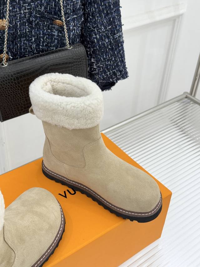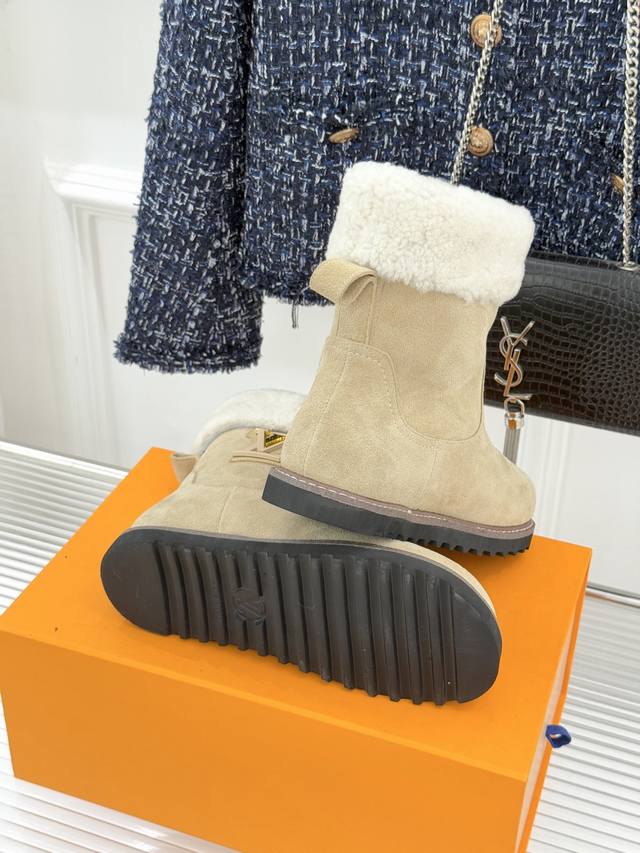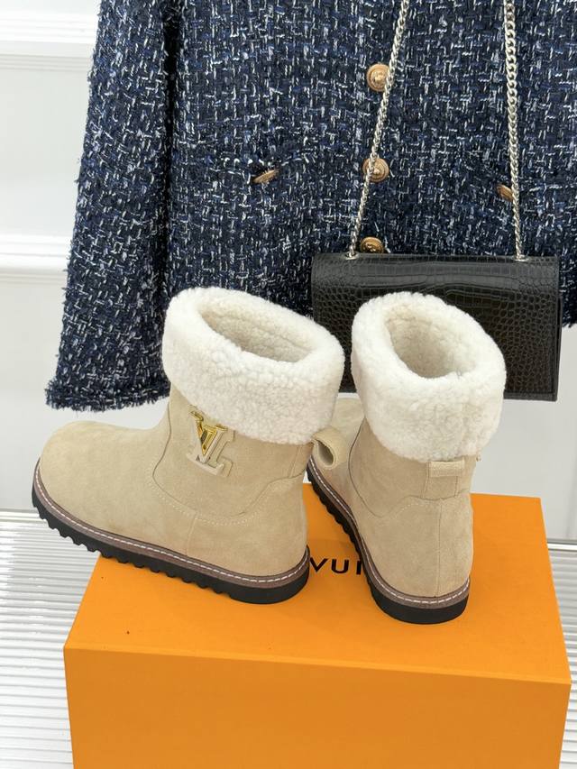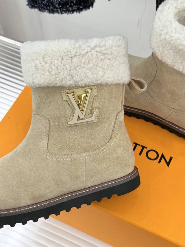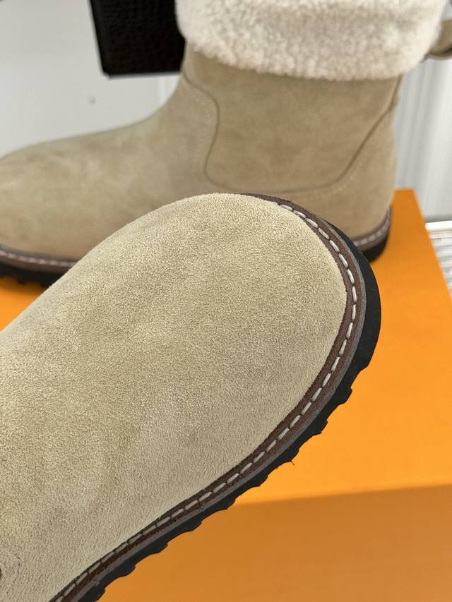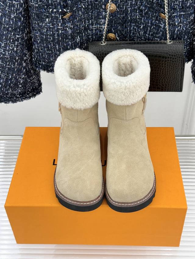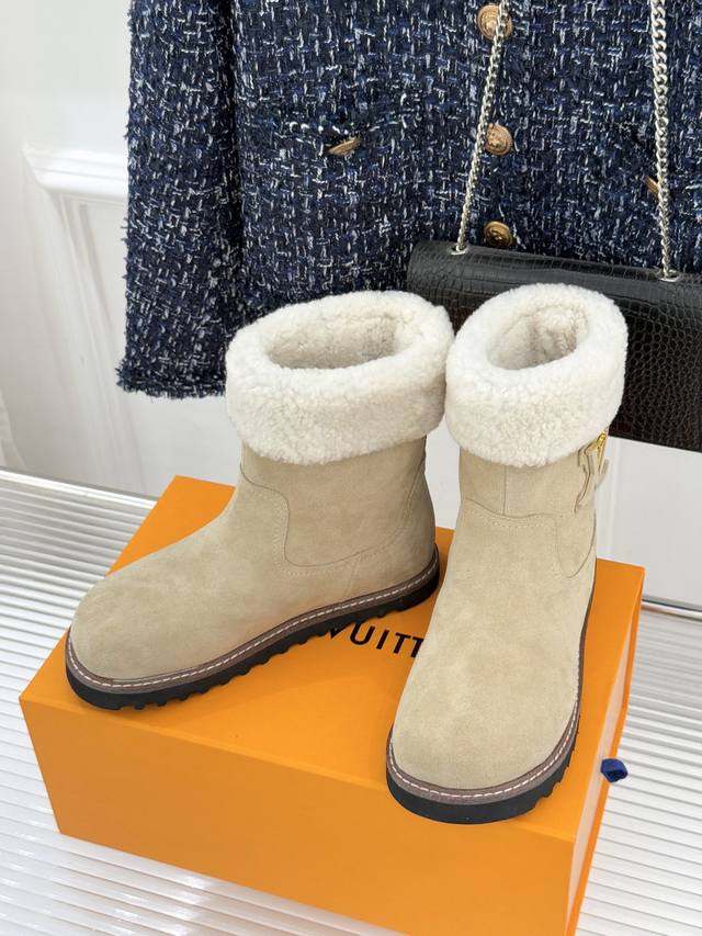 厂价 DDD L*V 驴家经典秋冬翻毛金属扣 DDD 雪地短靴 DDD 以经典基因融合实用美学 DDD 解锁冬日奢华暖意穿搭。 DDD 甄选细腻翻毛面料勾勒靴身轮廓 DDD 触感软糯自带复古质感 DDD 靴口拼接绵密羊毛内衬 DDD 亲肤包裹脚踝 锁住暖意不闷脚 DDD 行走间自带温柔蓬松触感 DDD 踩上即是沉浸式暖感体验。 DDD 鞋身点缀品牌标志性老花纹路 DDD 沉淀时光韵味 辨识度拉满却不张扬 DDD 侧边金属扣饰烙刻经典Lv标识 DDD 光泽细腻质感出众 既是点睛之笔 DDD 又为鞋履注入精致