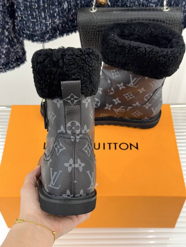 厂价 DDD L*V 驴家经典秋冬翻毛金属扣 DDD 雪地短靴 DDD 以经典基因融合实用美学 DDD 解锁冬日奢华暖意穿搭。 DDD 甄选细腻翻毛面料勾勒靴身轮廓 DDD 触感软糯自带复古质感 DDD 靴口拼接绵密羊毛内衬 DDD 亲肤包裹脚踝 锁住暖意不闷脚 DDD 行走间自带温柔蓬松触感 DDD 踩上即是沉浸式暖感体验。 DDD 鞋身点缀品牌标志性老花纹路 DDD 沉淀时光韵味 辨识度拉满却不张扬 DDD 侧边金属扣饰烙刻经典Lv标识 DDD 光泽细腻质感出众 既是点睛之笔 DDD 又为鞋履注入精致