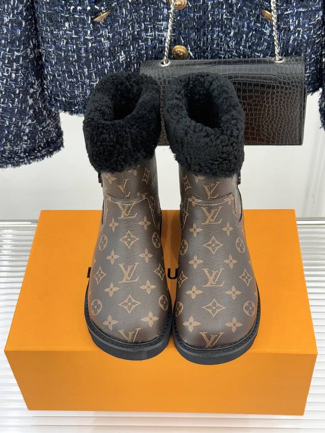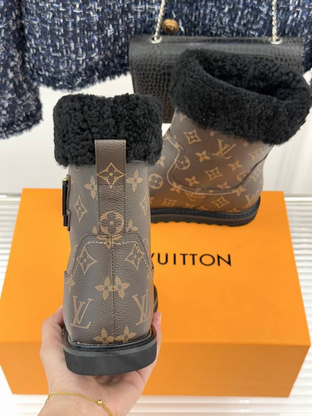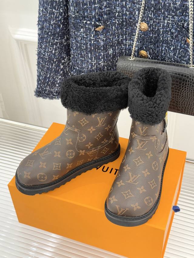 厂价 DDD L*V 驴家经典秋冬翻毛金属扣 DDD 雪地短靴 DDD 以经典基因融合实用美学 DDD 解锁冬日奢华暖意穿搭。 DDD 甄选细腻翻毛面料勾勒靴身轮廓 DDD 触感软糯自带复古质感 DDD 靴口拼接绵密羊毛内衬 DDD 亲肤包裹脚踝 锁住暖意不闷脚 DDD 行走间自带温柔蓬松触感 DDD 踩上即是沉浸式暖感体验。 DDD 鞋身点缀品牌标志性老花纹路 DDD 沉淀时光韵味 辨识度拉满却不张扬 DDD 侧边金属扣饰烙刻经典Lv标识 DDD 光泽细腻质感出众 既是点睛之笔 DDD 又为鞋履注入精致