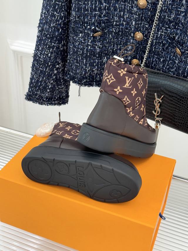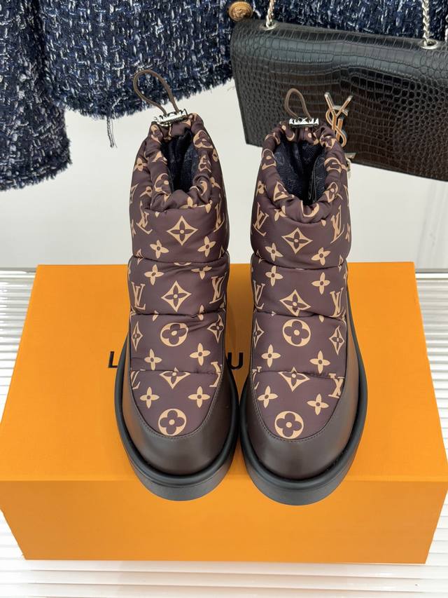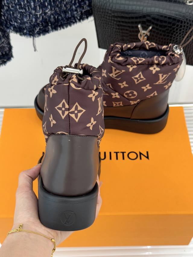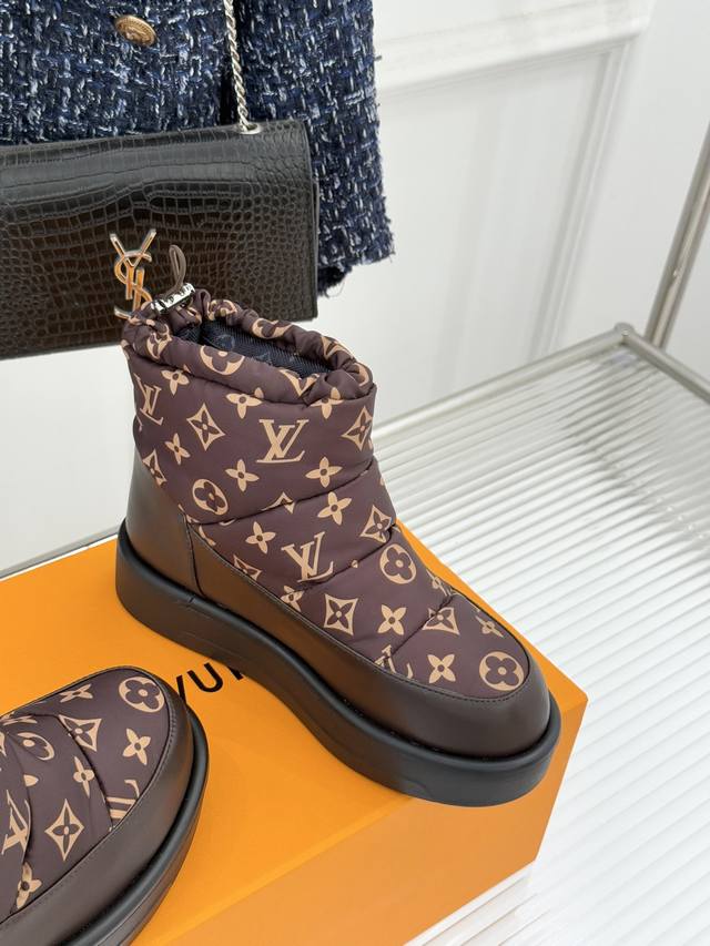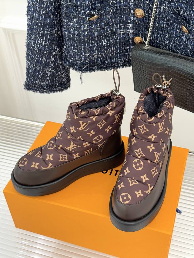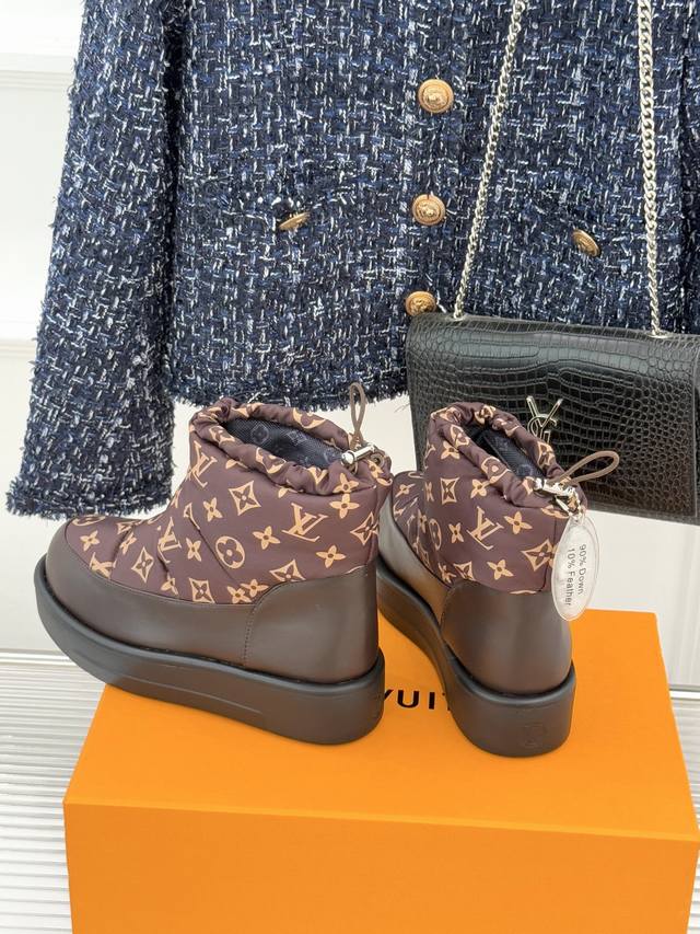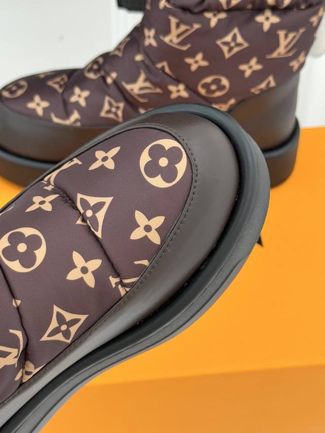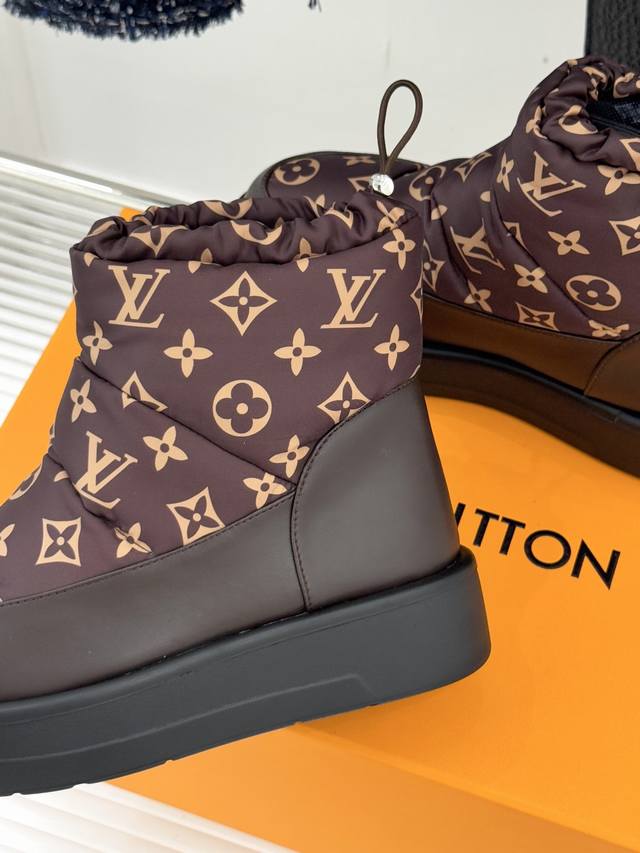 厂价 L*V 驴家经典秋冬pillow羽绒雪地靴 你还在穿着笨重雪地靴吗? 不妨试试这双超显腿长腿细的羽绒靴 将羽绒概念进行全新演绎 面包一样的质感 鞋面是采用
