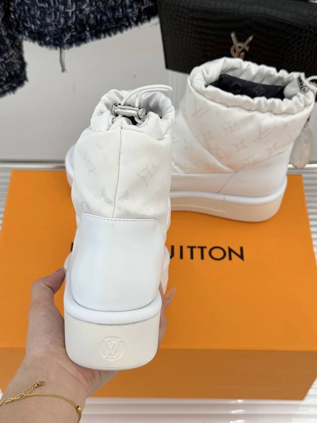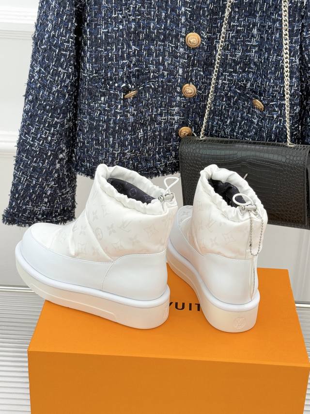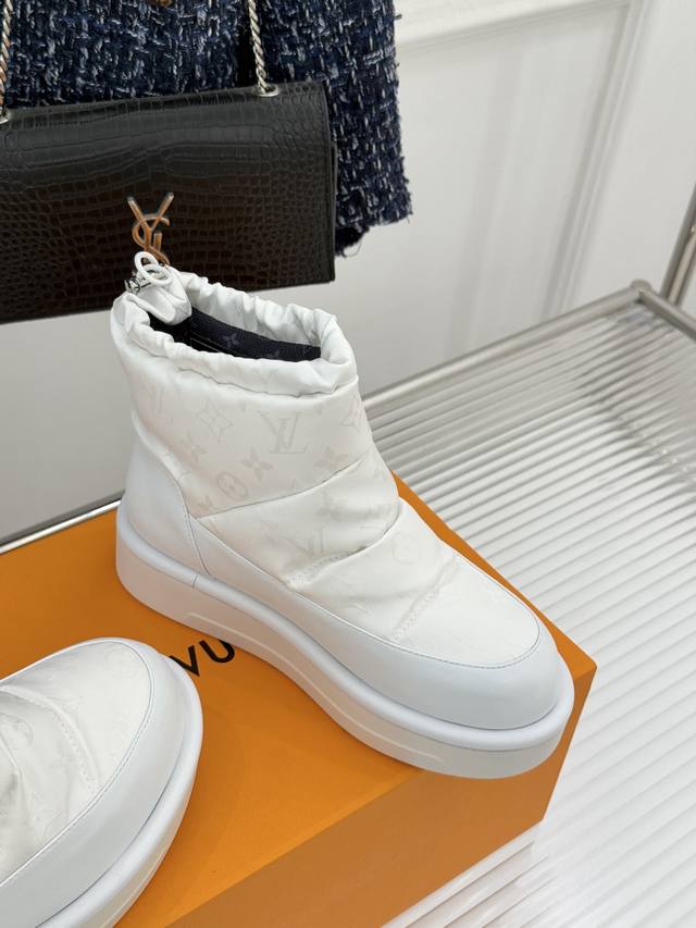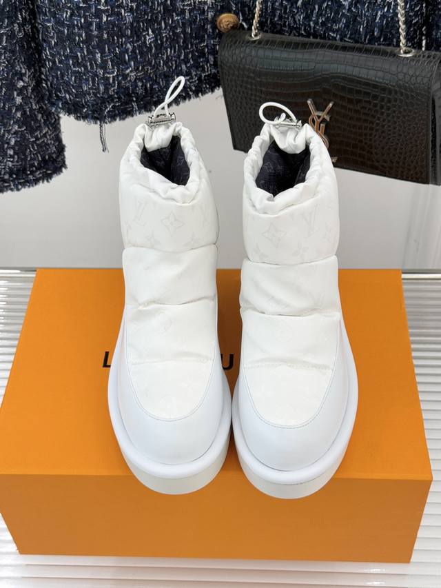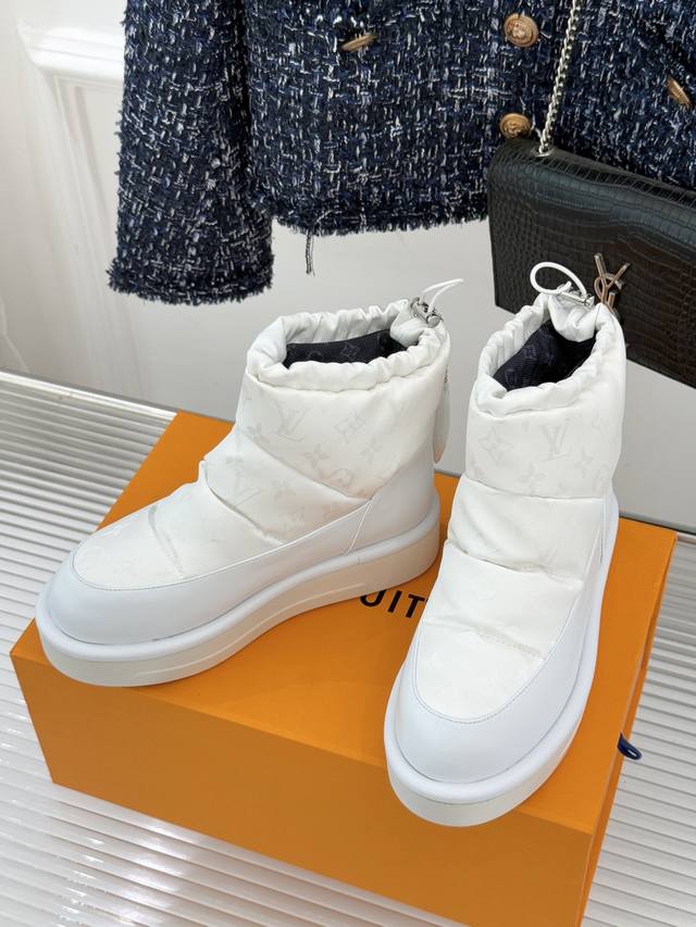 厂价 L*V 驴家经典秋冬pillow羽绒雪地靴 你还在穿着笨重雪地靴吗? 不妨试试这双超显腿长腿细的羽绒靴 将羽绒概念进行全新演绎 面包一样的质感 鞋面是采用