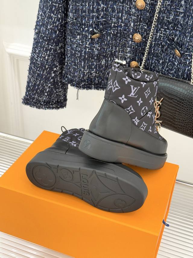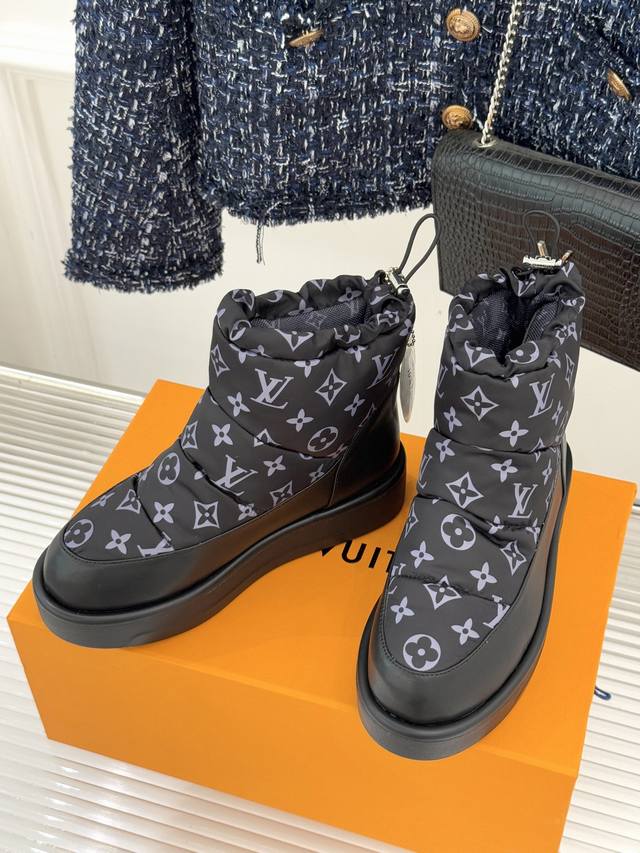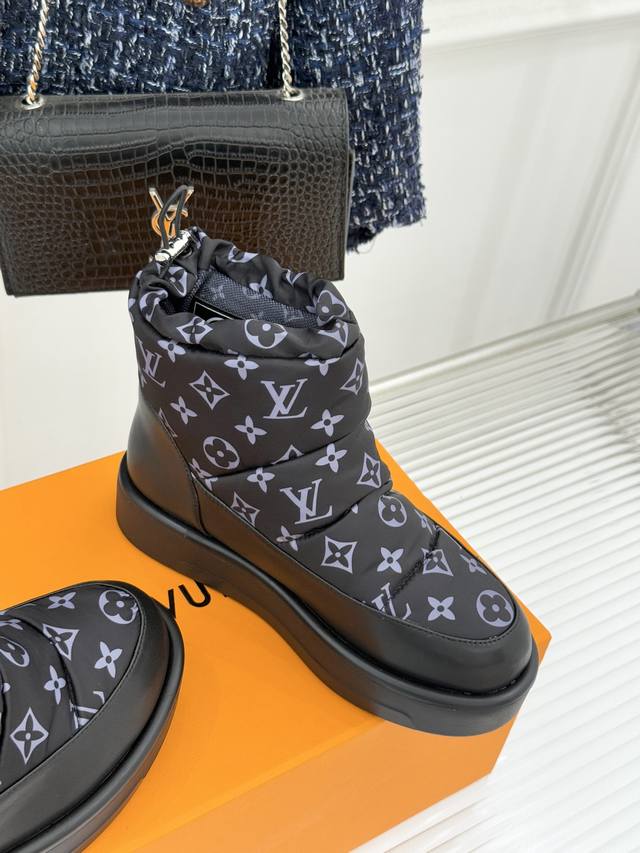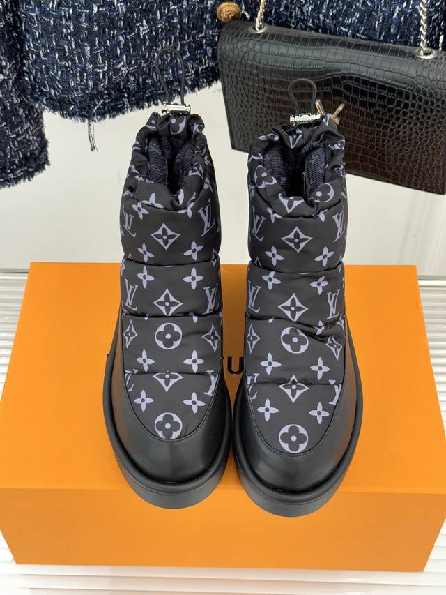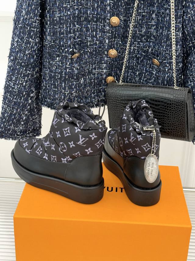 厂价 L*V 驴家经典秋冬pillow羽绒雪地靴 你还在穿着笨重雪地靴吗? 不妨试试这双超显腿长腿细的羽绒靴 将羽绒概念进行全新演绎 面包一样的质感 鞋面是采用