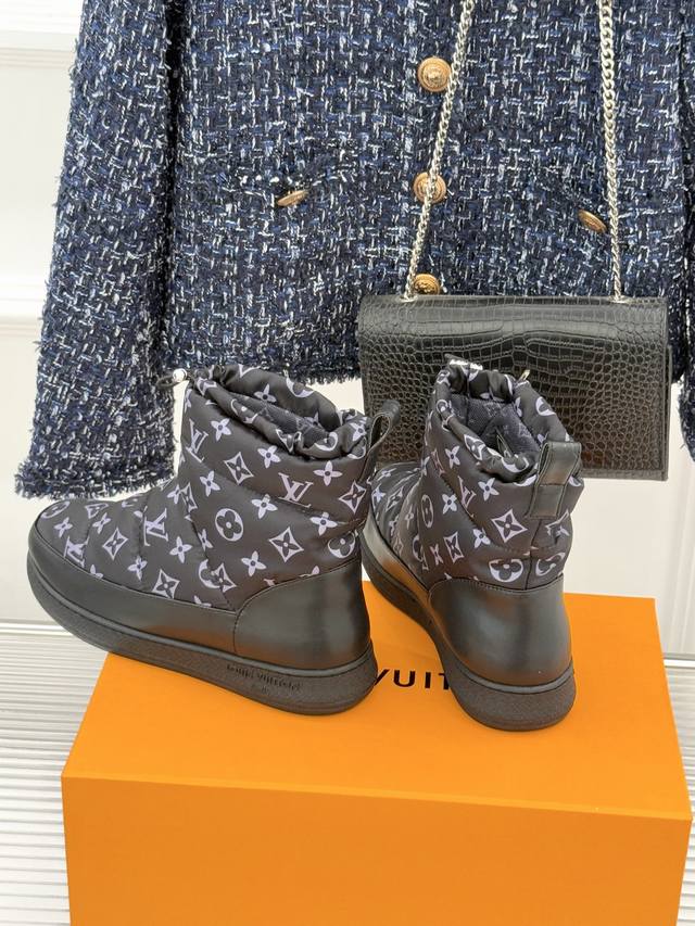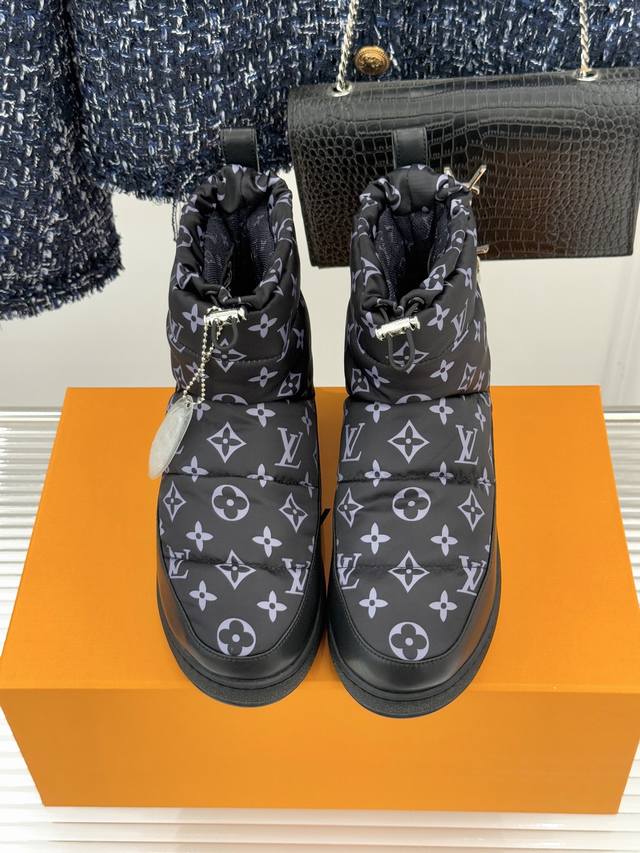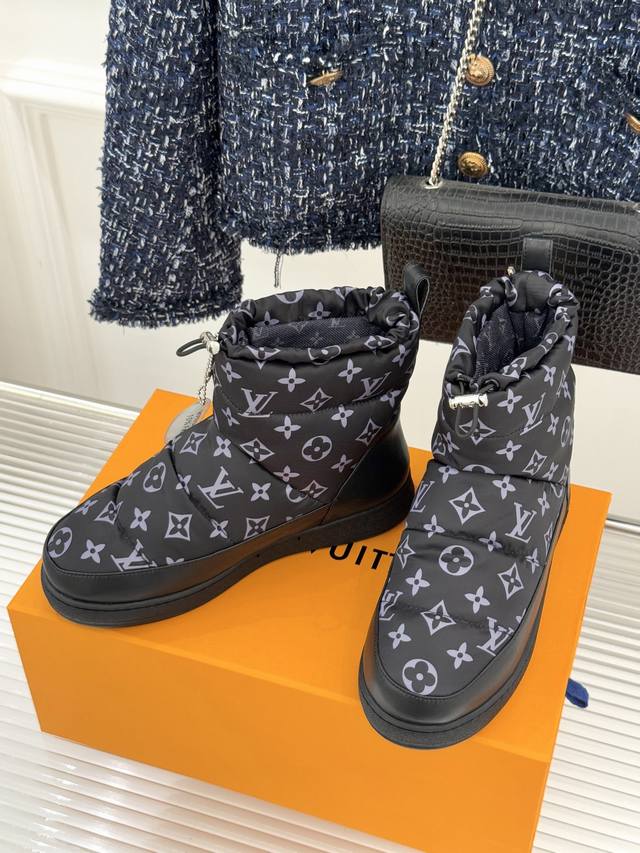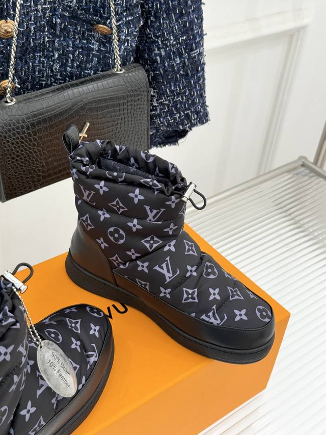 厂价 L*V 驴家经典秋冬pillow羽绒雪地靴 你还在穿着笨重雪地靴吗? 不妨试试这双超显腿长腿细的羽绒靴 将羽绒概念进行全新演绎 面包一样的质感 鞋面是采用