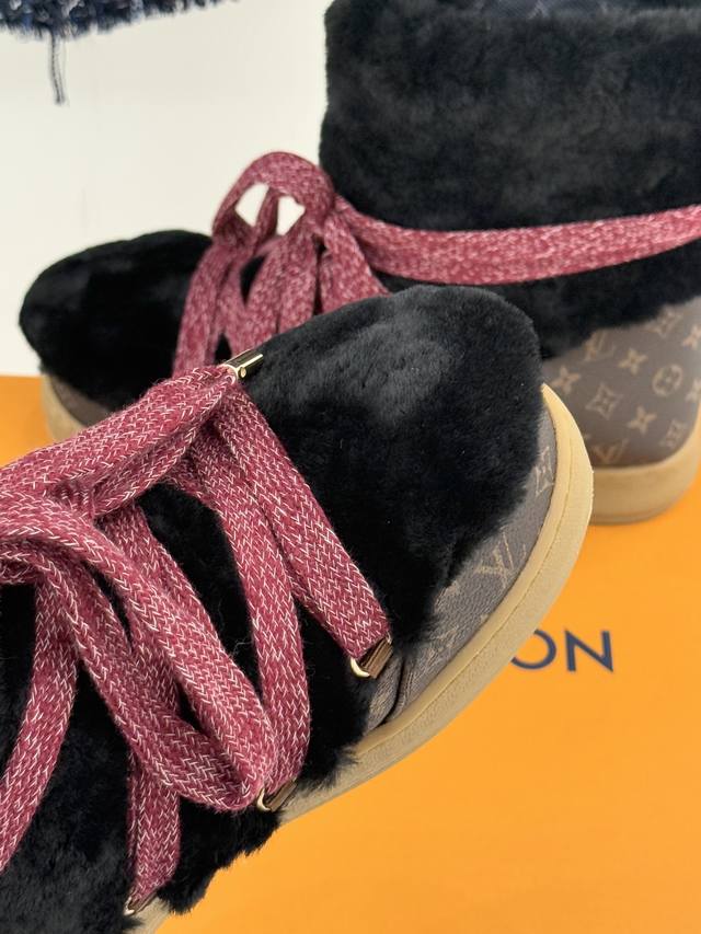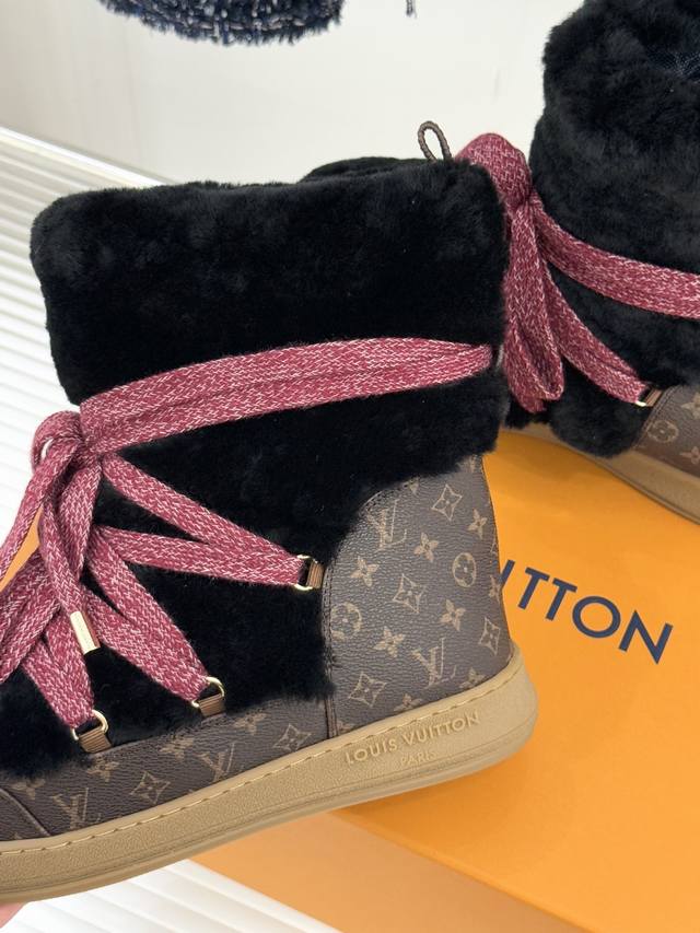 厂价 DDD L*V 驴家25Wf新品老花绑带雪地靴 DDD 将旅行艺术融入冬日日常。 DDD 经典Monogram图案历经时光淬炼 DDD 在鞋身铺陈出低调贵气 DDD 加粗绑带设计强化轮廓感 DDD 厚实同时牢牢锁住温暖。 DDD 精选防水耐磨材质抵御雨雪侵袭 DDD 高密度保暖内衬持续蓄热 DDD 精湛工艺经得起风雪考验。 DDD 从通勤路的寒风到假日滑雪的欢腾 DDD 它既是守护双脚的温暖铠甲 DDD 也是彰显品味的奢品标识 DDD 让踏雪都成为优雅与实用的完美邂逅。 DDD 面料采用羊皮拼接老花