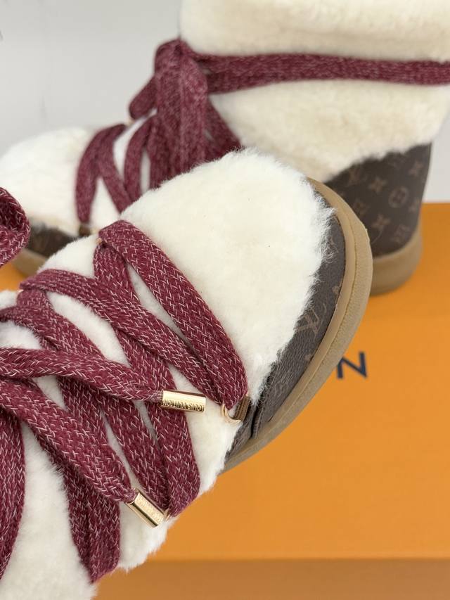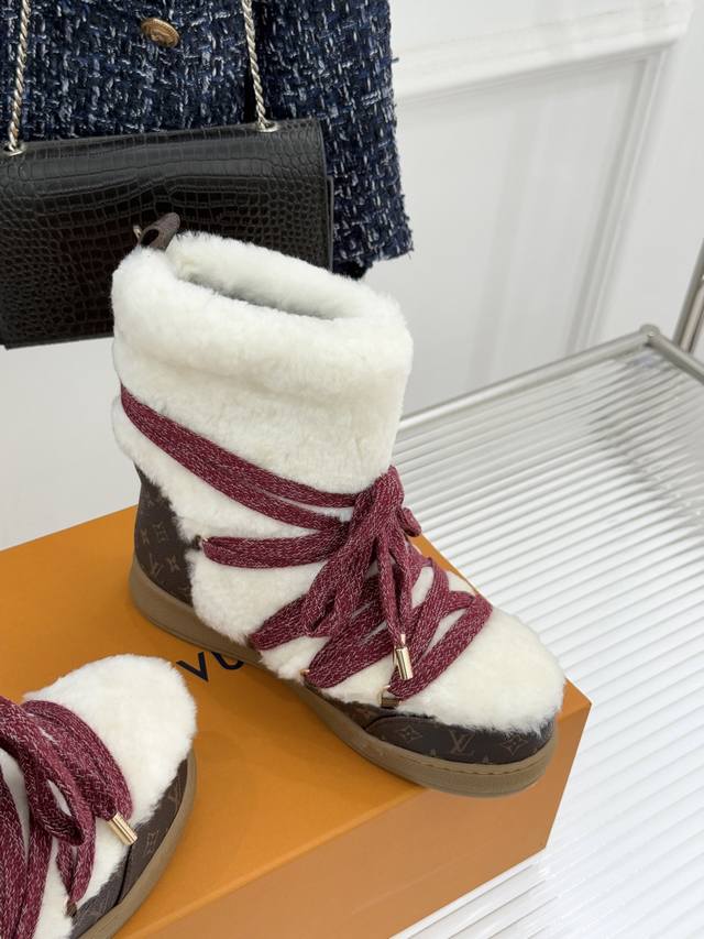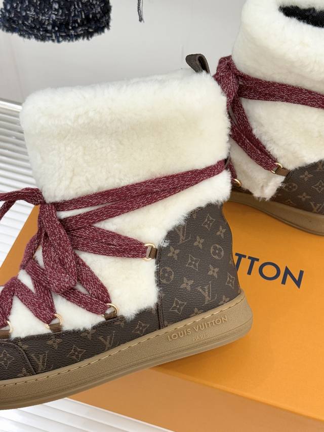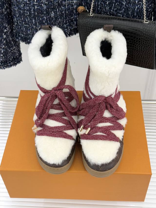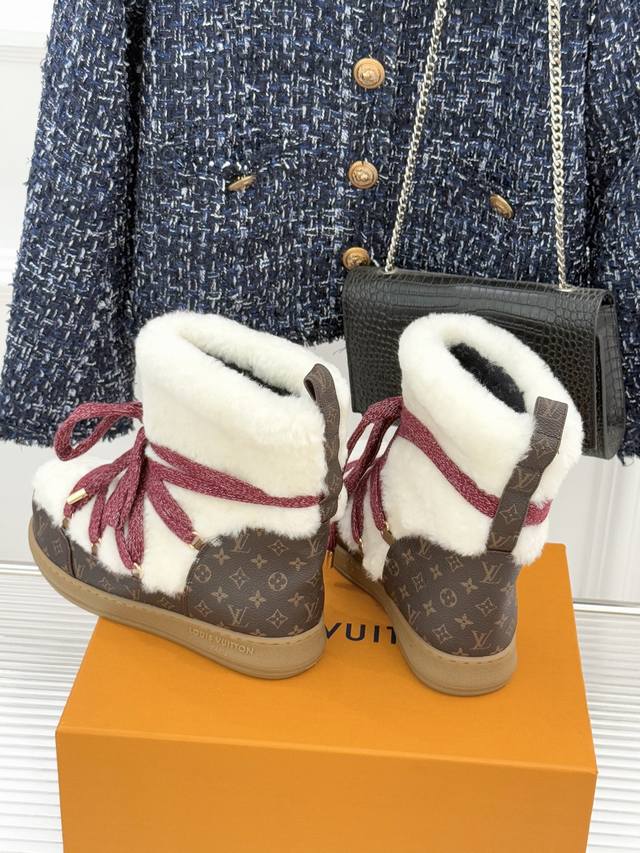 厂价 DDD L*V 驴家25Wf新品老花绑带雪地靴 DDD 将旅行艺术融入冬日日常。 DDD 经典Monogram图案历经时光淬炼 DDD 在鞋身铺陈出低调贵气 DDD 加粗绑带设计强化轮廓感 DDD 厚实同时牢牢锁住温暖。 DDD 精选防水耐磨材质抵御雨雪侵袭 DDD 高密度保暖内衬持续蓄热 DDD 精湛工艺经得起风雪考验。 DDD 从通勤路的寒风到假日滑雪的欢腾 DDD 它既是守护双脚的温暖铠甲 DDD 也是彰显品味的奢品标识 DDD 让踏雪都成为优雅与实用的完美邂逅。 DDD 面料采用羊皮拼接老花