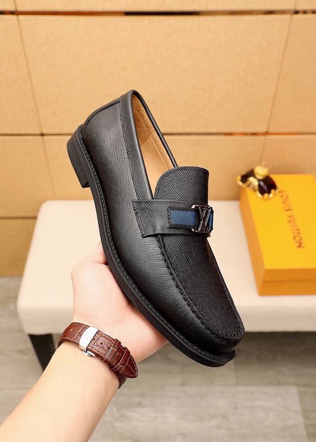 商品商标:Louis Vuitton 路易威登 休闲皮鞋 DDD 正码码数: 38-44 45订制 DDD 商品材料:精选 进口头层十字纹牛皮鞋面+奢华五金扣,进口头层牛皮内里。强烈立体视觉效果,原版橡胶大底 DDD 颜 色:1色可选 DDD