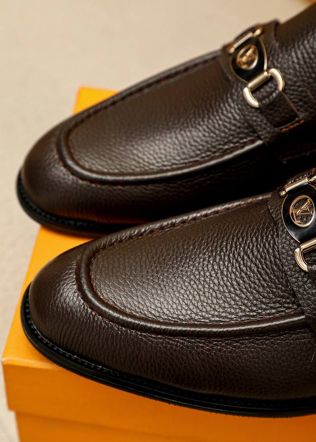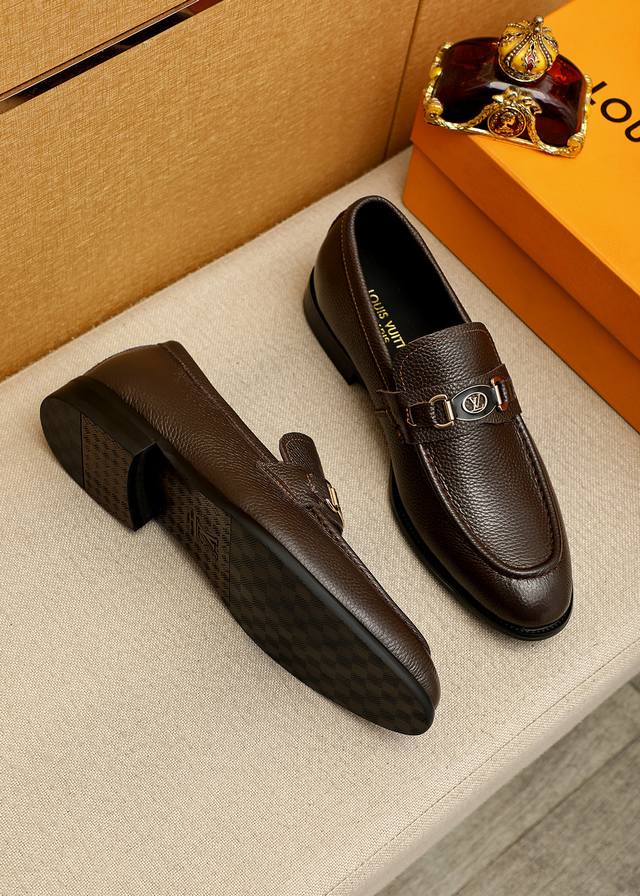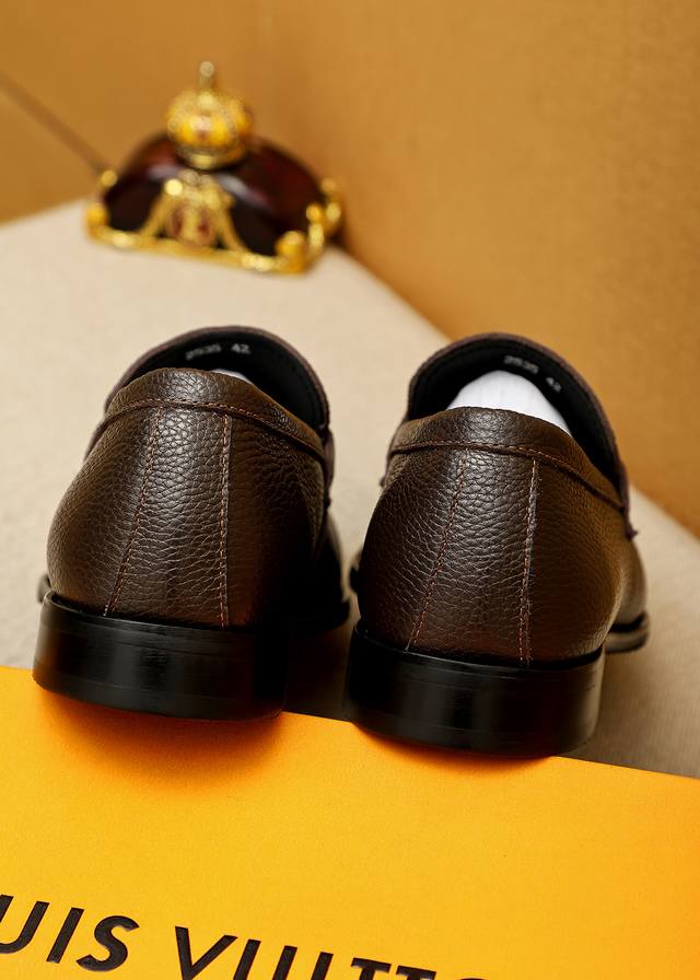商品商标:Louis Vuitton 路易威登 休闲皮鞋 正码码数: 38-44 45.46订制 商品材料:精选 进口头层荔枝纹牛皮鞋面+奢华五金扣,进口头层牛