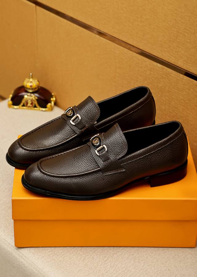 商品商标:Louis Vuitton 路易威登 休闲皮鞋 DDD 正码码数: 38-44 45.46订制 DDD 商品材料:精选 进口头层荔枝纹牛皮鞋面+奢华五金扣,进口头层牛皮内里。强烈立体视觉效果,原版大底 DDD 颜 色:2色可选 DDD