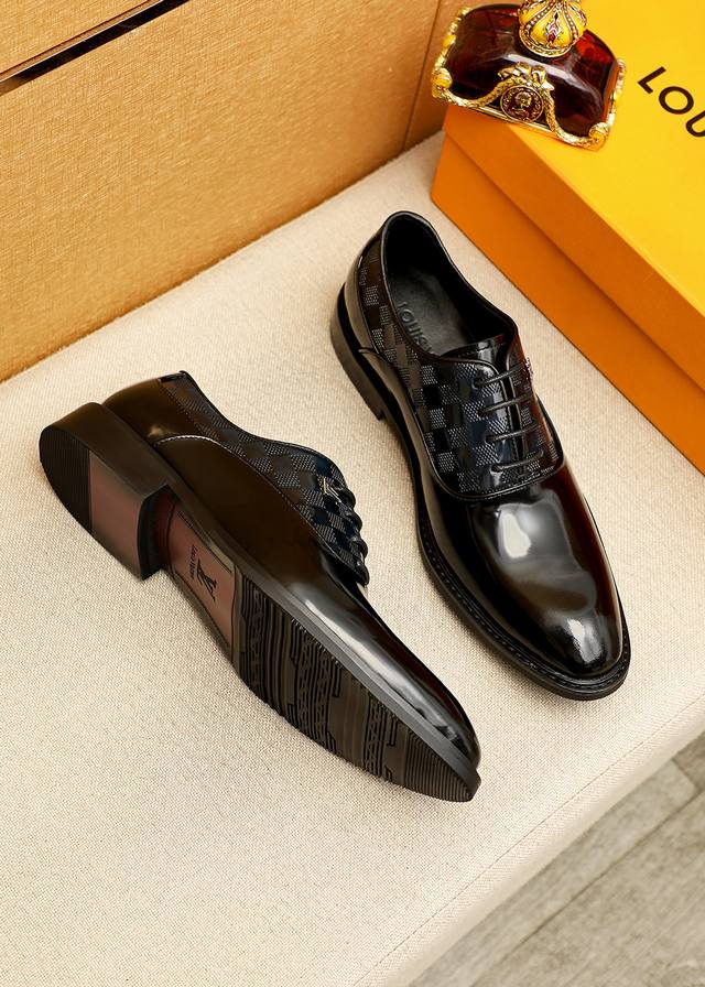 louis Vuitton Lv 男士经典牛津鞋男士商务正装精品皮鞋 经典款 杏仁核精致鞋头 极致艺术 全鞋采用进口奶牛牛皮 开边珠 精挑细选...