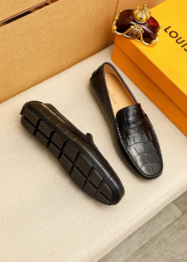 / 商品商标:Louis Vuitton 路易威登 豆豆鞋 正码码数: 38-44 45.46订做 商品材料:精选 头层小牛皮压花鞋面,进口猪皮内里。强烈立体视觉效