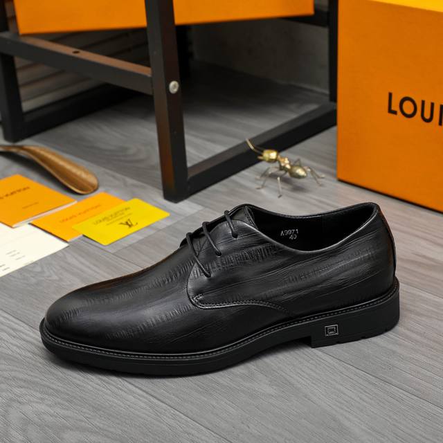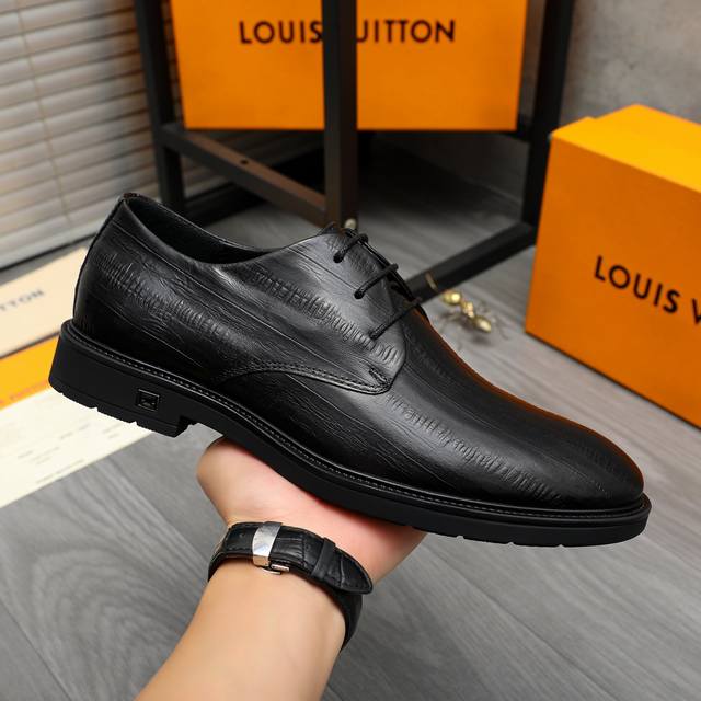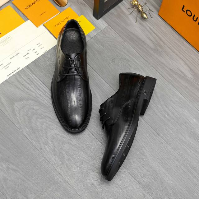 / 商品商标:Lv 路易威登 商务系带皮鞋 DDD 正码码数: 38-46 45.46定做不退换 DDD 商品材料:精选优质竖纹牛皮鞋面 牛皮内里 橡胶大底 DDD