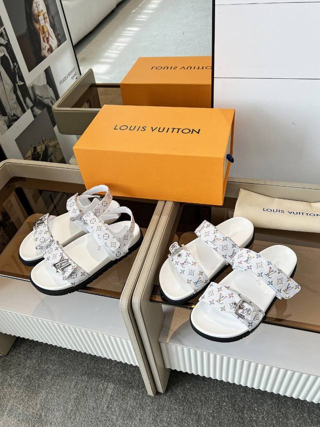 工厂P价 女装女鞋 运动原单 Louis Vuitton路易威登多色可选新款拖鞋火爆上市,1:1高级定制,秒杀一切仿品,原版开模Logo装饰,既时尚又美观,面料:小牛皮,内里羊皮,精美原版鞋楦,大底,鞋底加水台4厘米。码数35 42, 多色可选带图下单,