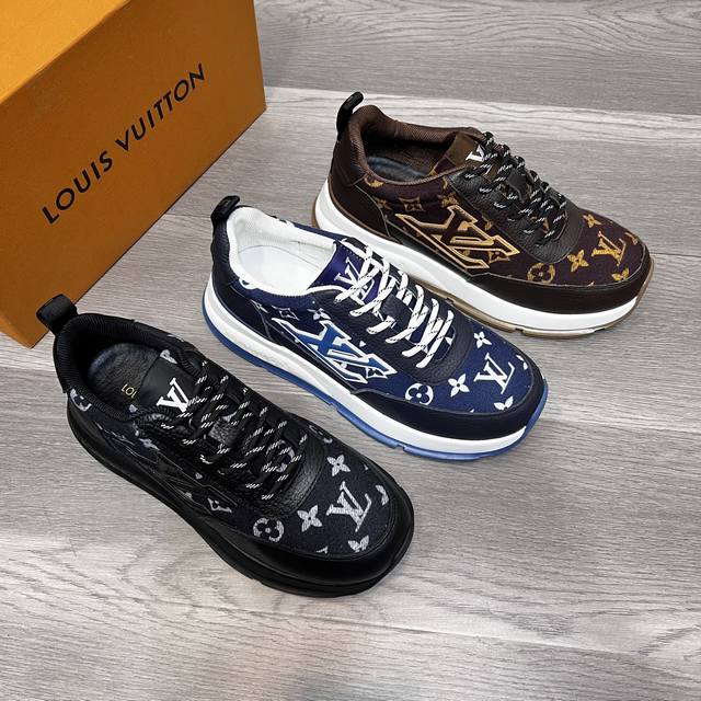 工厂p价 Lv哲新款休闲运动男鞋 时尚百搭, 版型简洁大气, 面料采用进口牛皮配原版布料,内里羊皮垫脚,原版耐磨橡胶大底,独家新款,实物拍摄,三色可选,码数:38-44, 45可定做 DDD