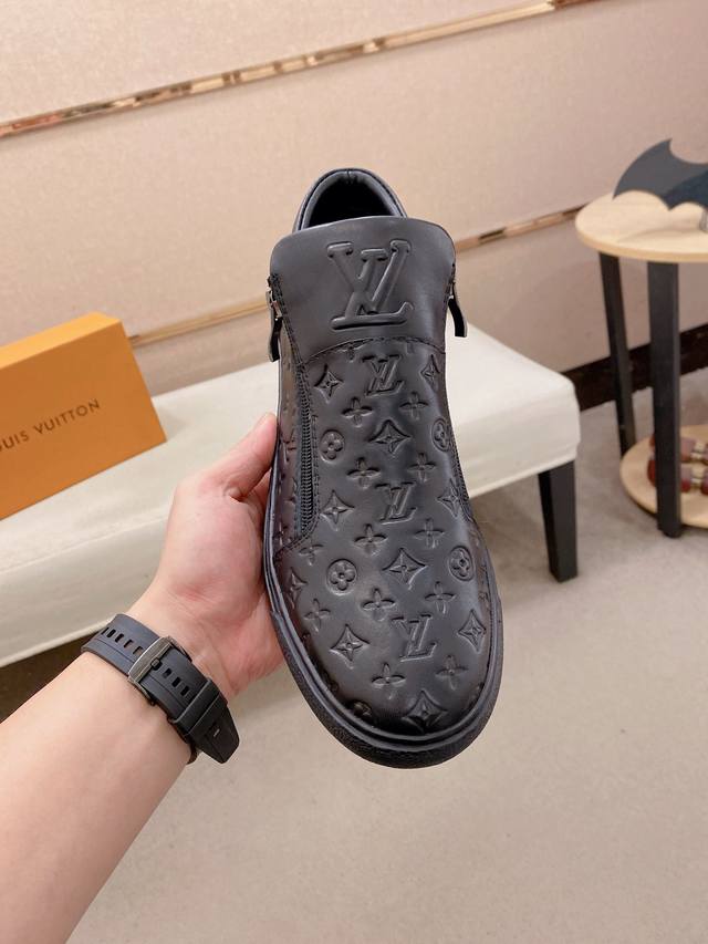 FFF 工厂P价 Lv~路易威登潮流 新款出货 最新搭配 官网同款 超高品质 当季热卖 精选头层牛皮 舒适绵羊皮内里 原版套楦 上脚舒适 耐磨橡胶大底 鞋码38到44。 DDD