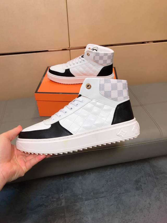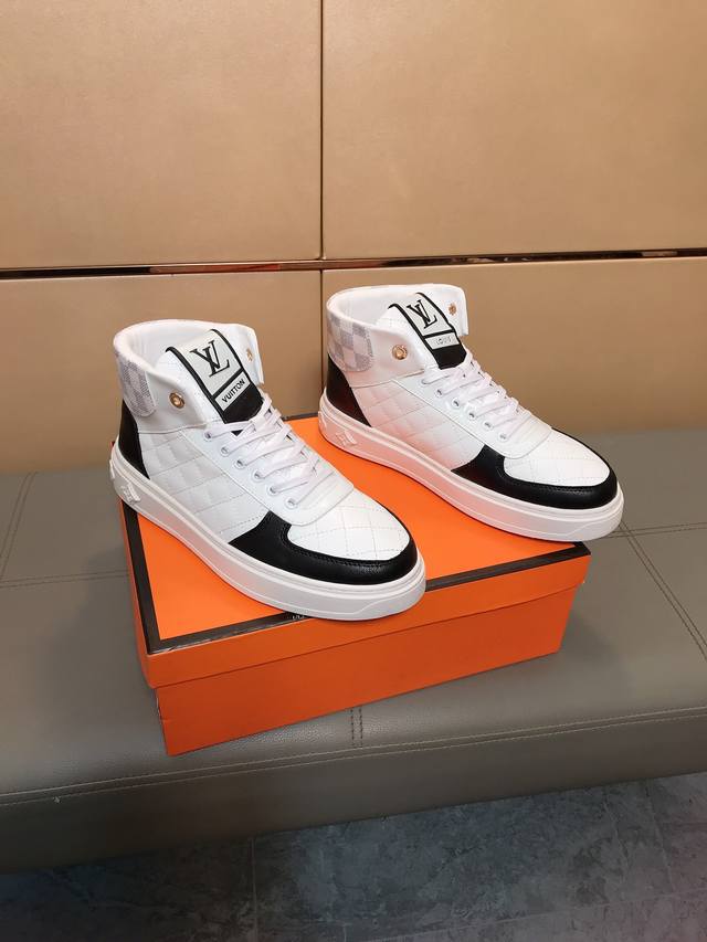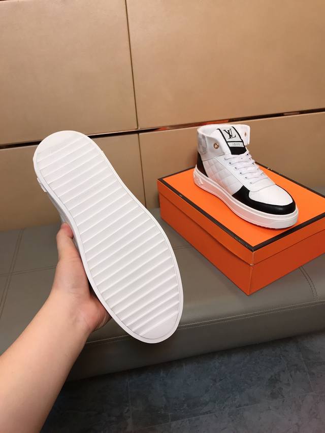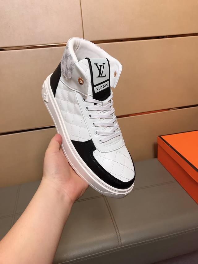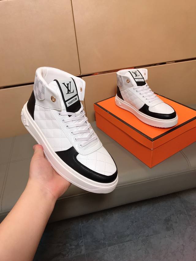 / 工厂p价 Lv路易威登 新款男士韩版高帮休闲鞋 爆款,进口牛皮搭配原版印花,真皮内里,耐磨防滑橡胶大底。你还为穿着搭配鞋发愁,那这款鞋你就是你不二的选择!码数: