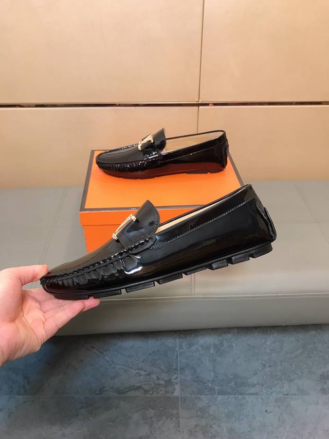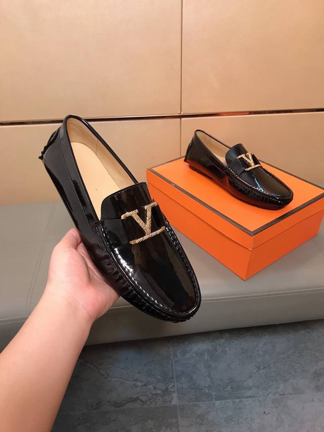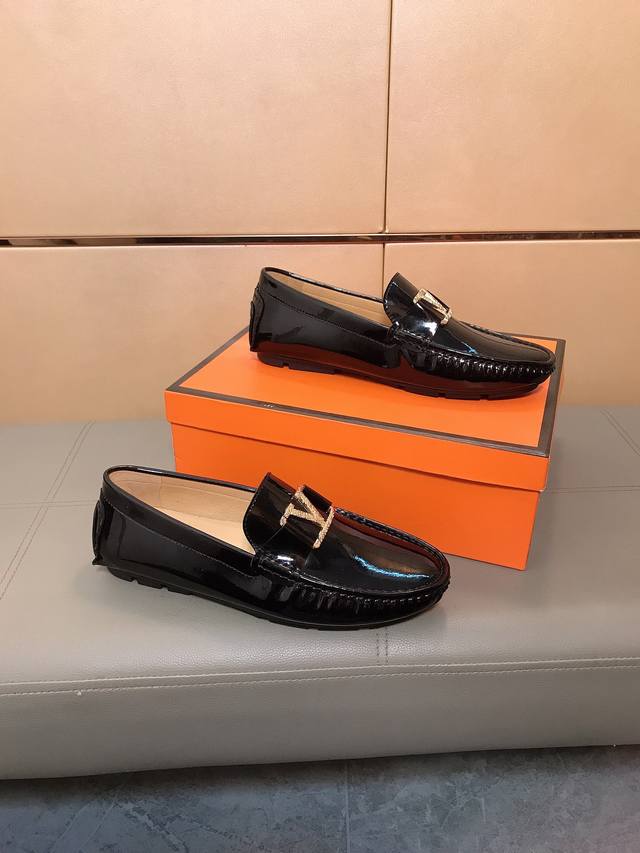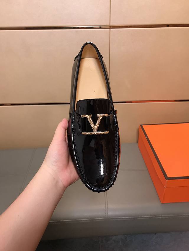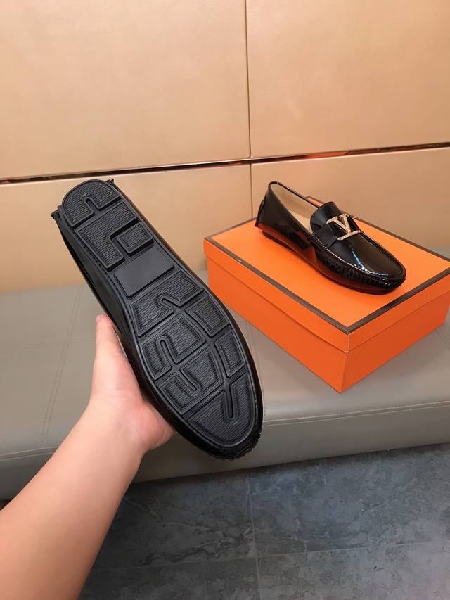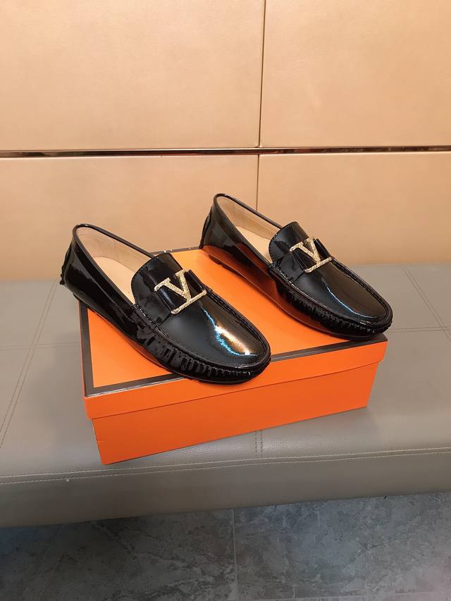 工厂P价 Lv路易威登 男士高品质休闲豆豆鞋。懒人套脚乐福款 ,进口顶级意大利漆皮,羊皮内里 ,更为高档 ,原版防滑耐磨橡胶大底驾车唯一选择,码数:38-44