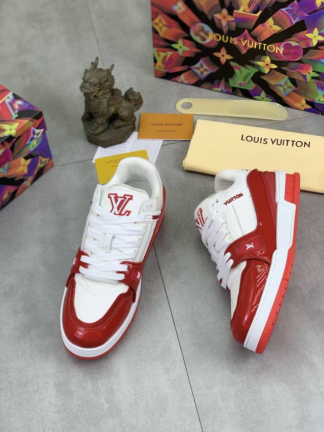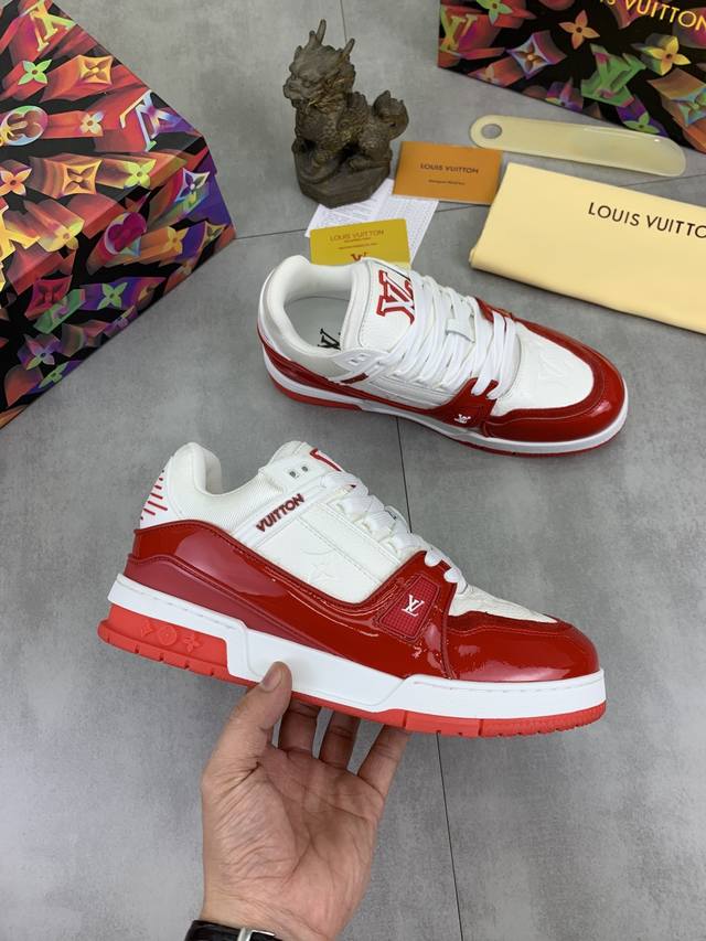 Louis Vuitton 路易威登 -高端品质 原单休闲运动板鞋 -鞋面 纳帕小牛皮.丝印品牌图腾 荔纹小牛皮彩印品牌图腾 鞋舌.后跟...