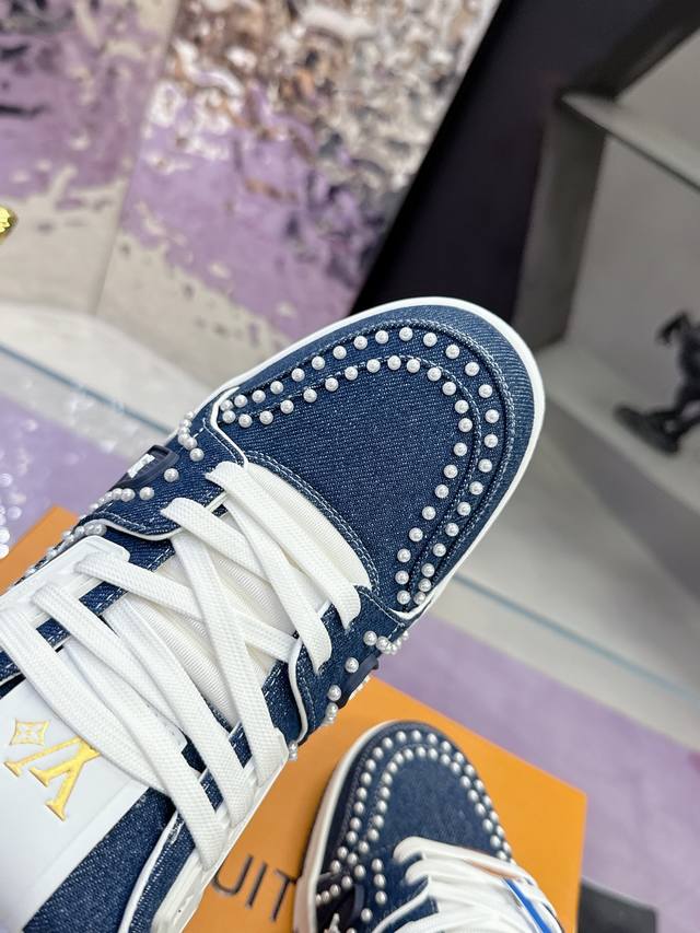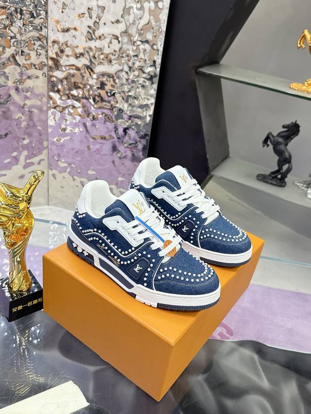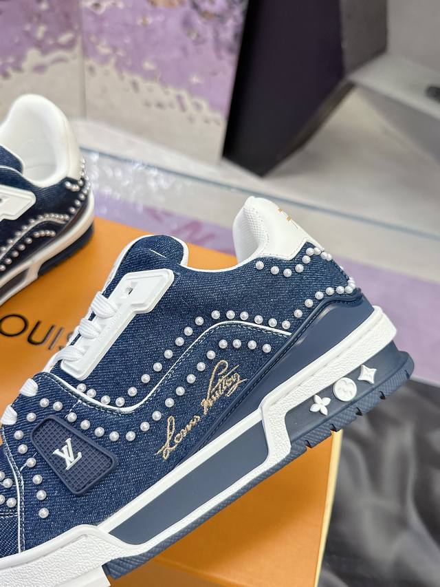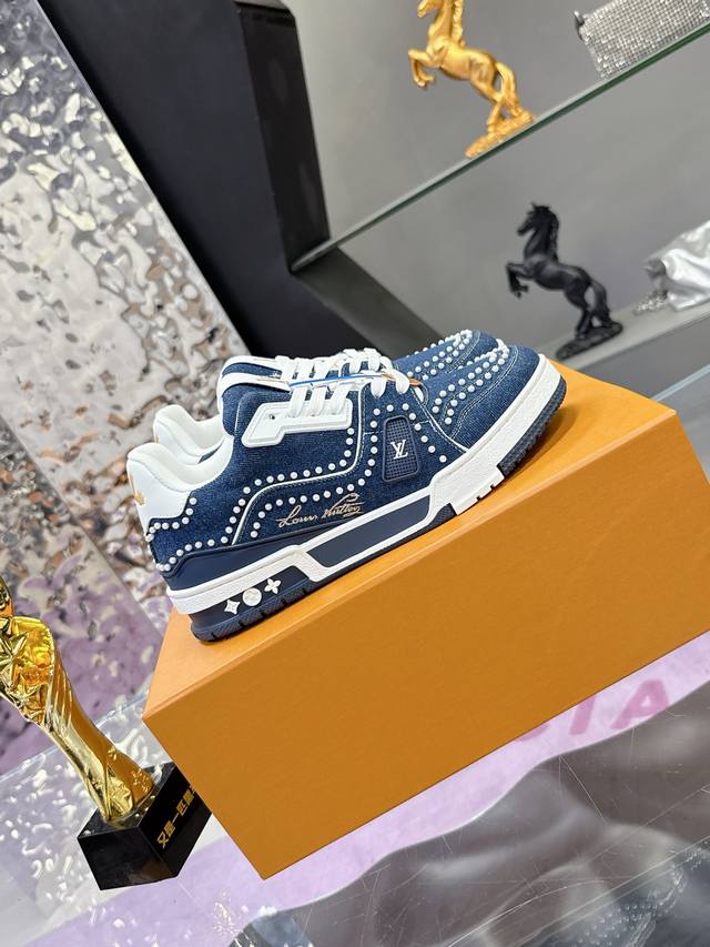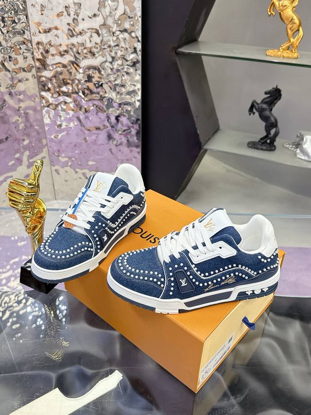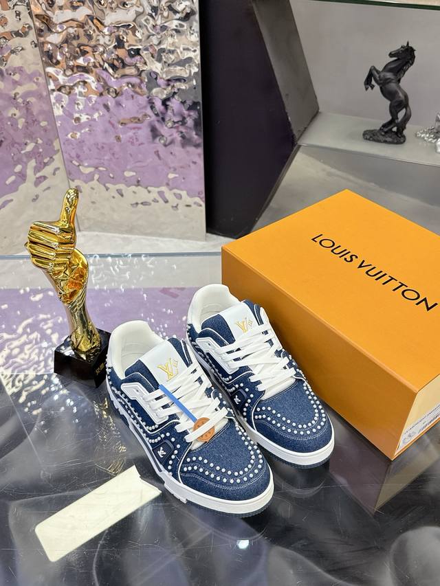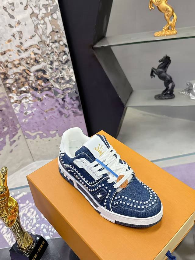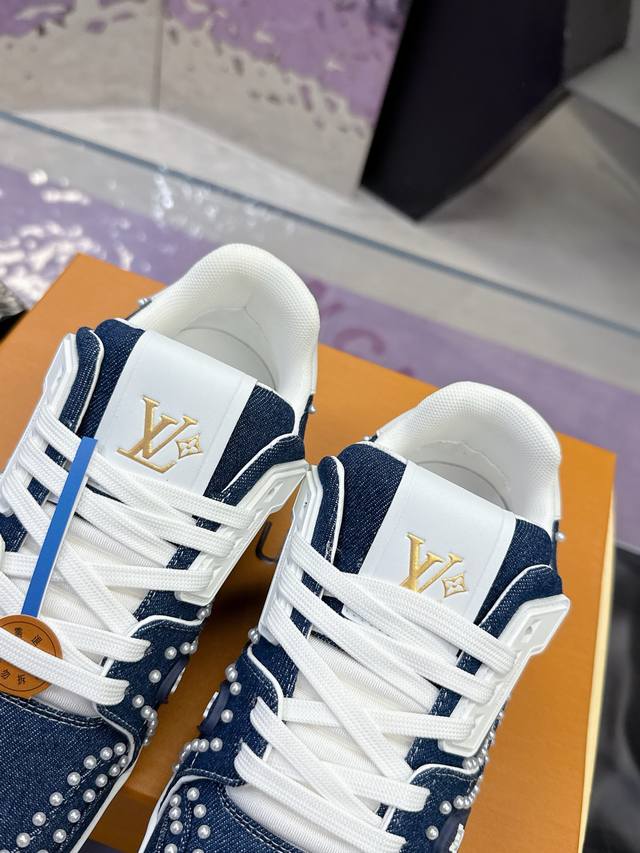 工厂p价p: DDD 本款 Lv Trainer 运动鞋致意 pharrell Williams 与 Nigo 在 2025 秋冬男装秀场的联袂合作,以工致饰钉为光滑牛皮革鞋面点缀两位设计师的首字母标签,与后部的肖像图案相映成趣。橡胶 Lv 字母和 Vuitton 标识完善瞩目设计 DDD 配送专柜精美包装 DDD 面料: 原版定制头层牛皮 DDD 内里: 原版定制透气网里 DDD 大底: 原版开模双色Tpu组合大底 DDD 底厚: 3Cm DDD Size: 女款35-40 男38-46 DDD