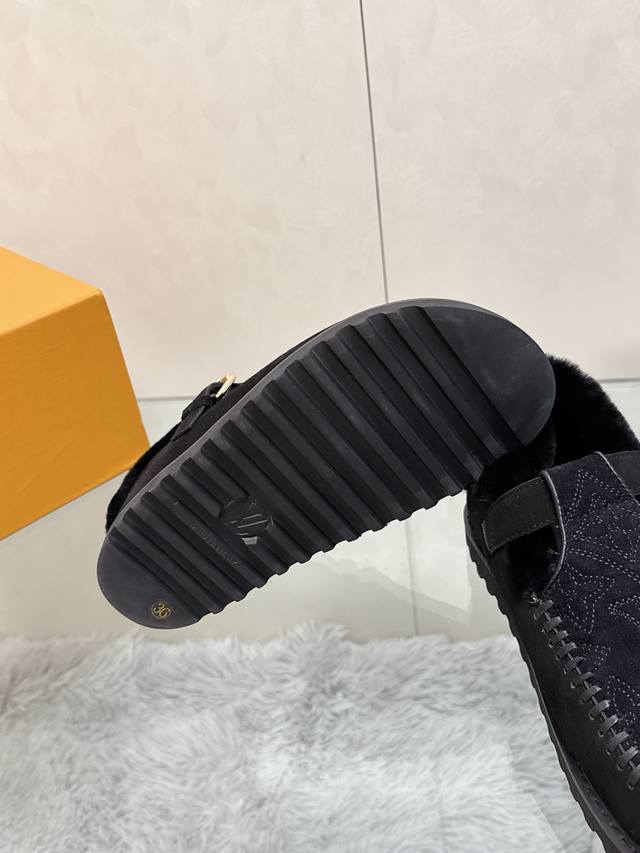 工厂P价P: 路易威登Lv Louis Vuott On Fw25New Arrival~秋冬最新款毛毛拖鞋~ 这双毛拖也是好好看!皮质的就是非常高级呀!!搭配秋冬的牛仔短裤 简直就是完美呀!穿上立马拥有理想的身高有没有! 大爱款,有时尚元素,鞋面外表 贵气感十足 穿上它总能展现女性时尚韵味 时尚却不过分张扬,鞋面高档牛筋加上驴家字母扣实在太美 鞋面:进口高端 磨砂 牛皮 大底:原版大底 内里:进口真羊毛 Size:35-40 41 定制