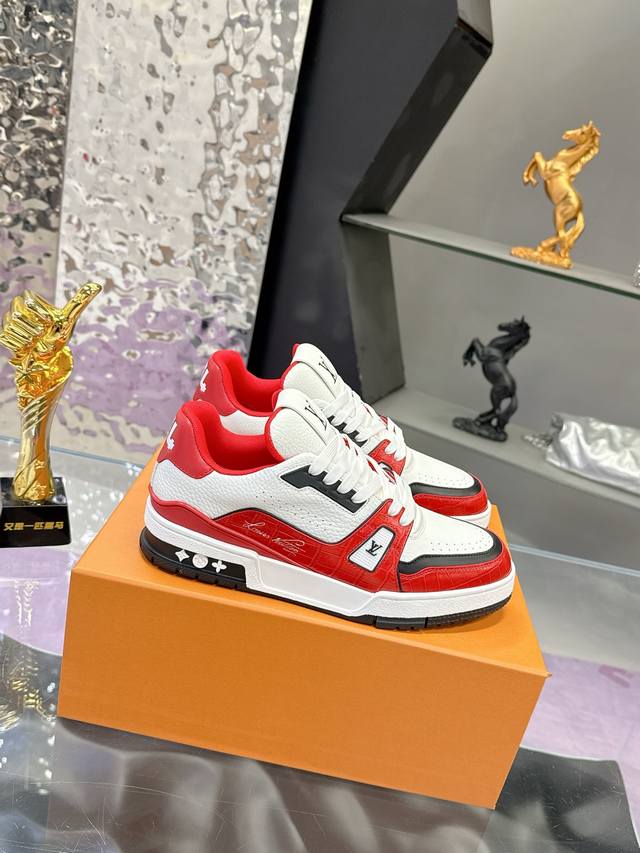 工厂p价p: 2025最新颜色 出货 Lv 路易威登L家 驴牌 Trainer系列 情侣款 休闲 运动鞋 滑板鞋 原版购入开发 做货 本款Lv Trainer