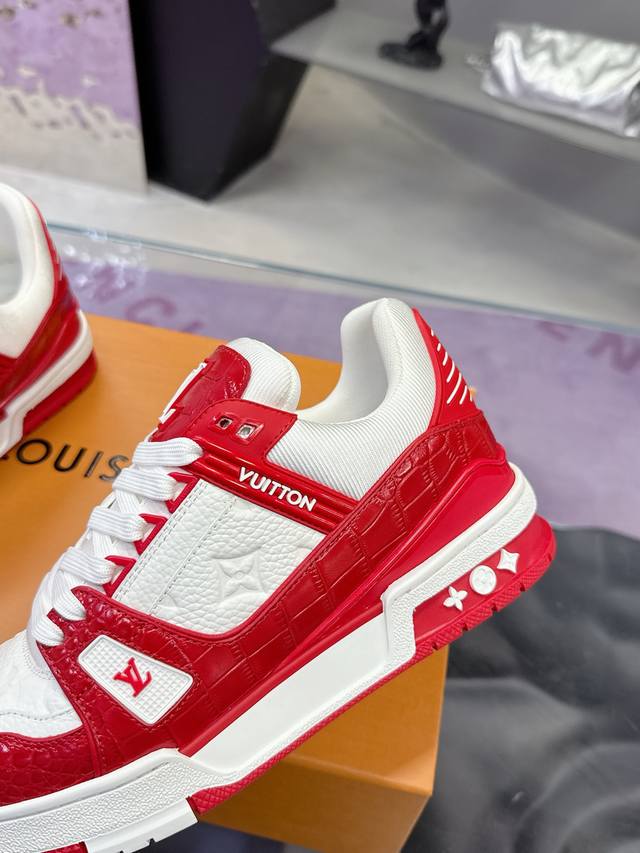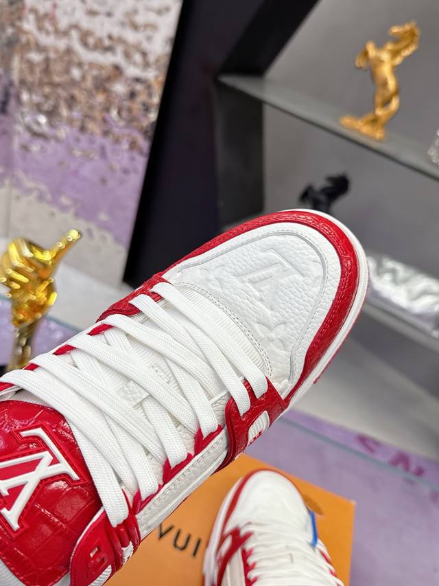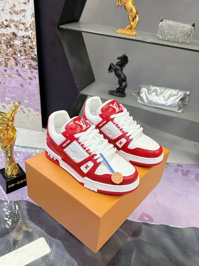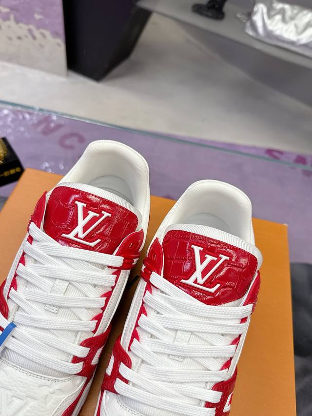 工厂p价p: DDD 2025最新颜色 出货 DDD Lv 路易威登L家 驴牌 Trainer系列 情侣款 休闲 运动鞋 滑板鞋 DDD 原版购入开发 做货 本款Lv Trainer 运动鞋为正绒面牛皮革鞋身压印Damier图案,演绎复古篮球鞋的灵感启发。多重标识彰显品牌格调。可拆卸Monogram花卉标签与#54标识分饰鞋带与后部 DDD 配送专柜精美包装 DDD 面料: 原版定制进口材料 DDD 内里: 原版定制透气网里 DDD 大底: 原版开模防滑Tpu组合大底 DDD 底厚: 3Cm DDD Si