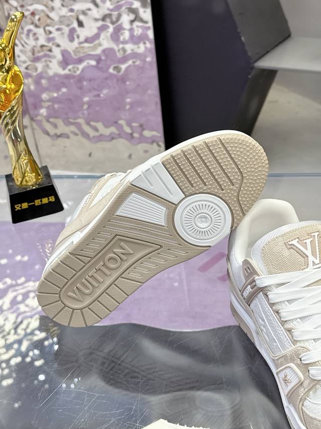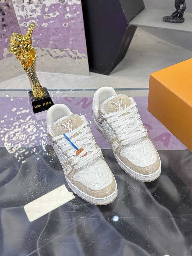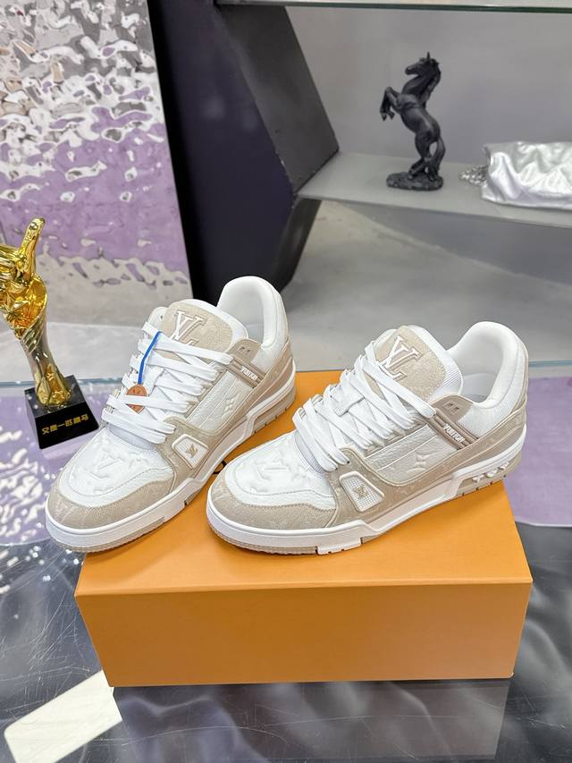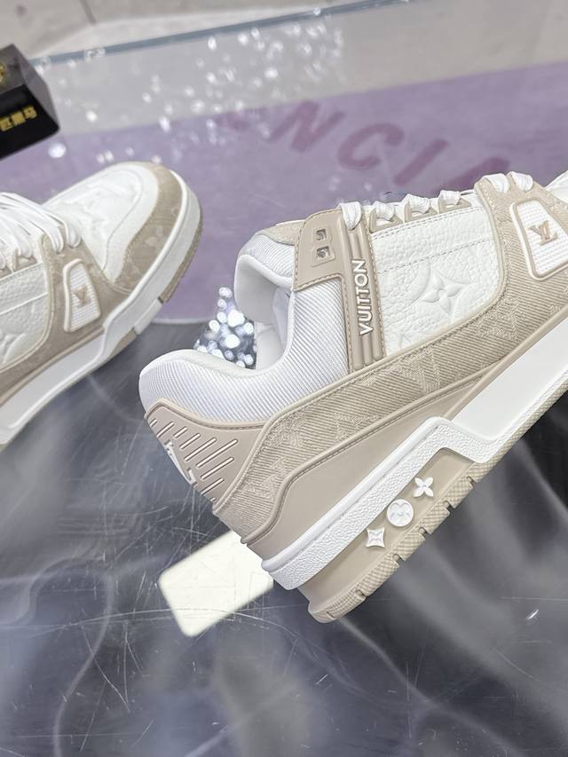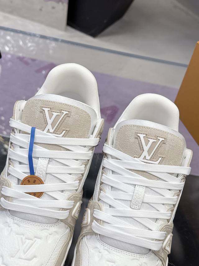FFF 工厂P价P: DDD 原版开发 品质出货 欢迎对比 Lv板鞋系列 DDD Lv Trainer Maxi运动鞋将成衣系列的宽松廓形引入Virgilabloh笔下的Lvtrainer运动鞋设计,在 春夏男装秀场瞩目亮相。牛皮革鞋面结合粗犷织物鞋带,以缤纷串珠点明品牌经典元素。Lv字母标注鞋舌,Monogram花卉栖身外底。 DDD 混合材质 DDD 采用头层牛皮制成,进口定制专用印花牛仔布包裹,粗鞋带系带设计,侧面带 Monogram 大印花, 鞋舌及后跟”Lv 54“徽章点缀,橡胶外底饰有 Mon