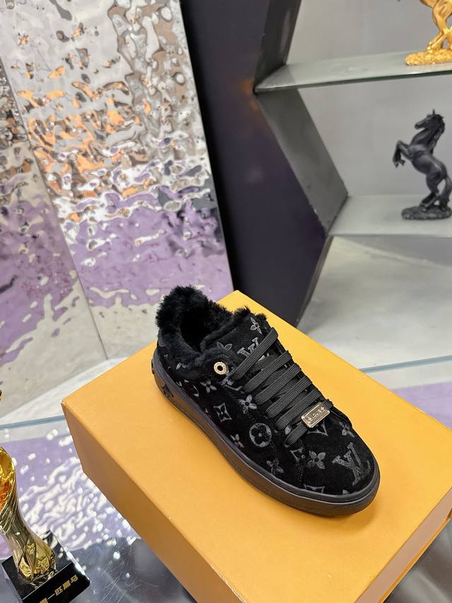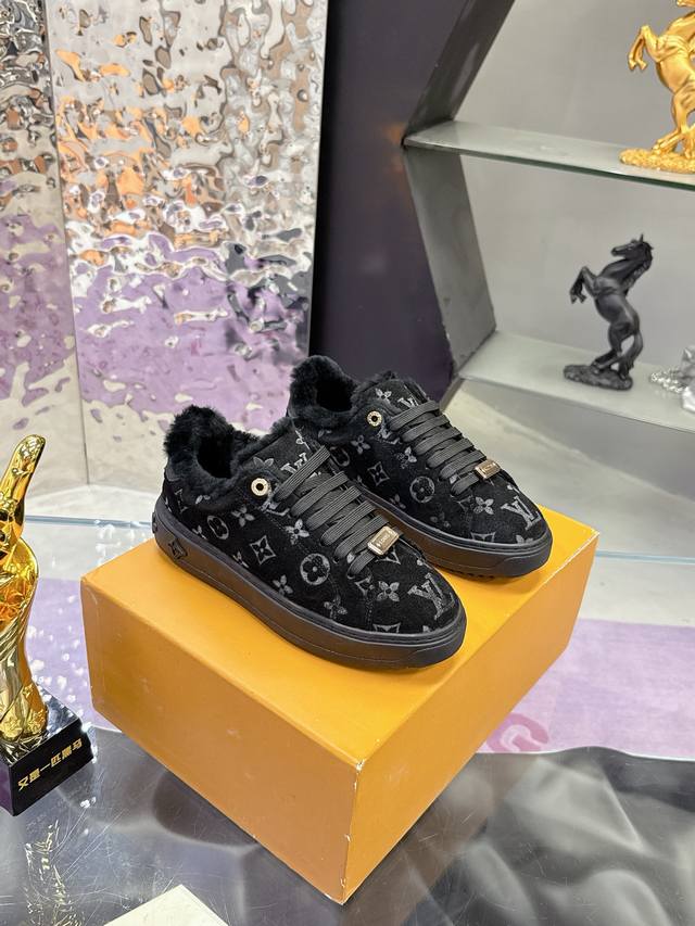 工厂p价p: DDD Lv真皮真毛 货真价实的高版货 DDD Time Out 新款运动鞋以丝绸小牛皮包裹舒软羊毛内衬,直面寒冷时节。柔软鞋面压印品牌经典 Monogram 图案,后侧 Monogram 帆布饰边和标志性加厚外底释放潮流魅力。原版1:1复刻,用料精挑细选,工匠精神做精品鞋子,物美价廉! DDD 面料:采用进口原版丝绸牛皮,上脚时尚柔软舒适 DDD 大底:开模具精准定制 与原版超级轻便,耐磨防滑 DDD 鞋面:丝绸牛皮+丝印+电绣 羊毛 羊毛垫. DDD 包装:原版全套豪华包装 DDD 码数