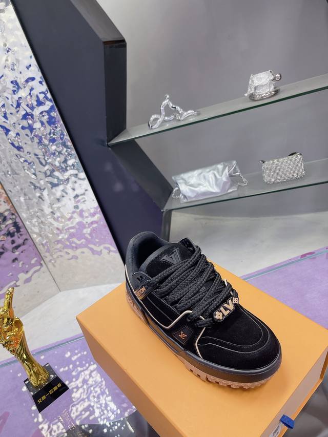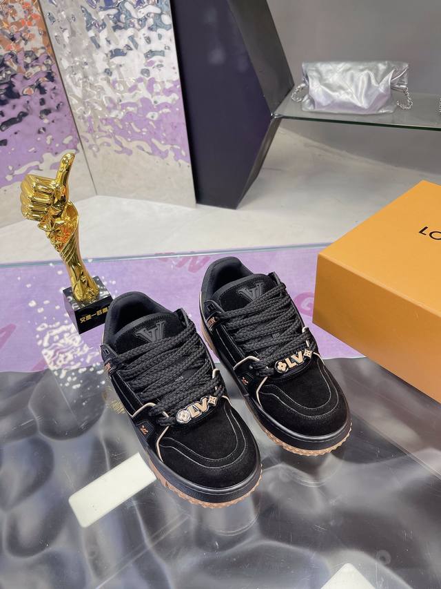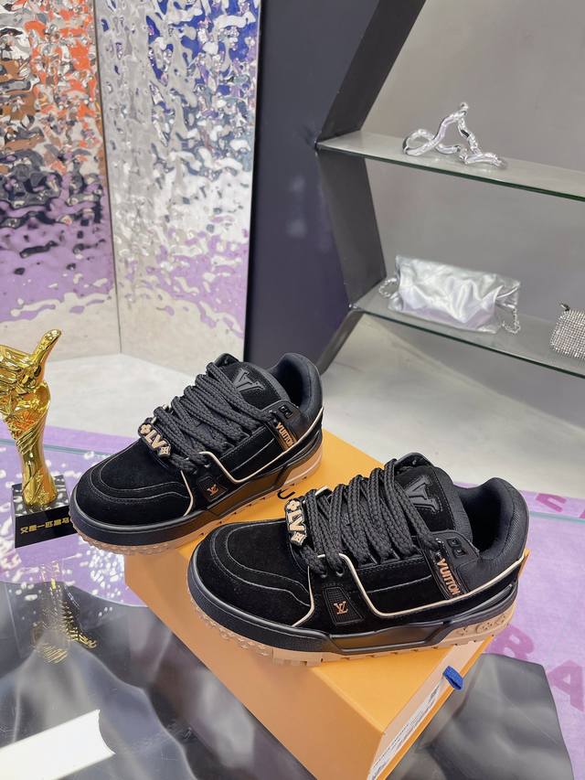 工厂P价P: Lv胖丁 情侣款 高版本货比三家 目前此版本只做Zp上市的 最高还原所有细节 、包装 Lvtrainer小胖丁 最新升级版本 原版一致 独家开模 市场天花板级 欢迎对比 对版私模大底 大星星颗粒 区别市场单薄的小星星对版饰品级扣子 扣子开模了一个月才定版! 每一个扣子都光滑不粗糙,晶莹剔透的质感!鞋腰对版做了松紧带 更能护好脚踝 提高舒适度,区别于市场货。中底布 是虚实相间的 独家打印效果 避免一眼假! 码数:女35-40 男39-45