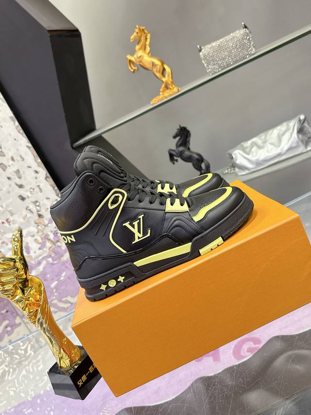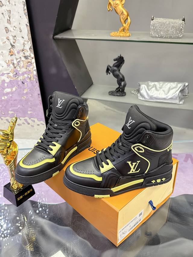 工厂p价p: DDD Lv2025走秀 米兰男款 最新出货 DDD Lvtrainer 高帮运动鞋 DDD 独家定制版 代购工艺 DDD 此款 L高帮运动鞋呈现出源自经典模型的创新 DDD 高端牛货!鞋面工艺复杂,进口牛皮材质,私模Tpu大底,外底印有Monogram花卉,这款超级百搭,搭配束脚裤贼帅,虽然是高帮但是上脚效果一点都不会臃肿,满满时尚感! DDD Size:38-44 38.45.46定做 DDD