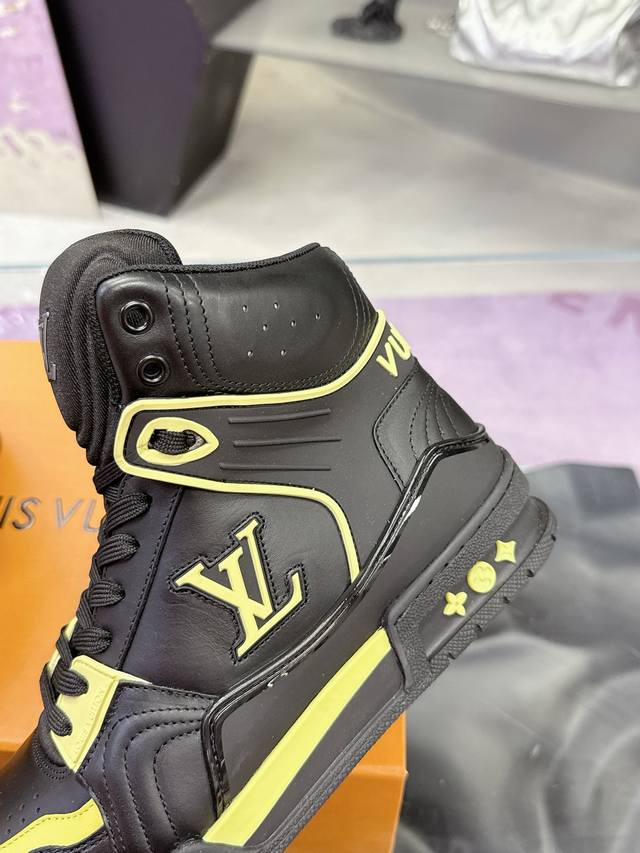 工厂p价p: Lv2025走秀 米兰男款 最新出货 Lvtrainer 高帮运动鞋 独家定制版 代购工艺 此款 L高帮运动鞋呈现出源自经典模型的创新 高端牛货!