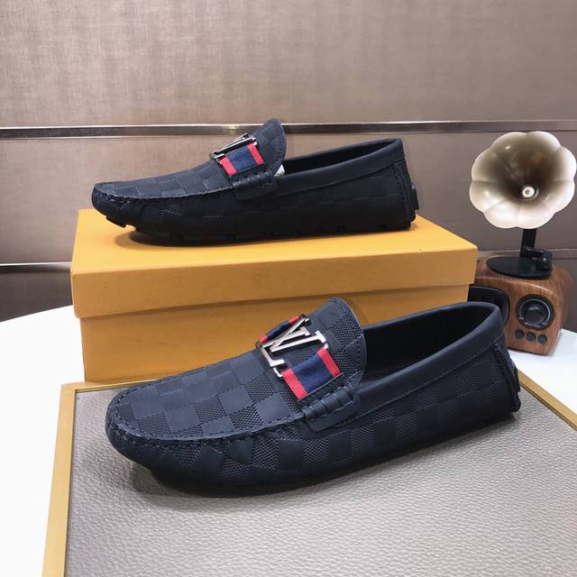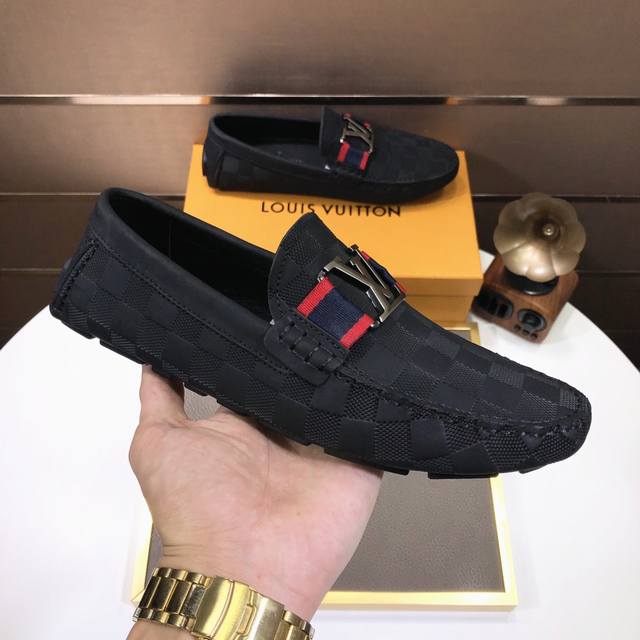 工厂P批 Lv豆豆鞋 羊皮内里 新款上市,官网有售,新款豆豆鞋,经过加工成为獨色材料,鞋面采用进口牛皮材料。 鞋身以马克线整体包边 ,进口原版牛皮内里,秀气的鞋型 超级适合百搭,码数38-44。