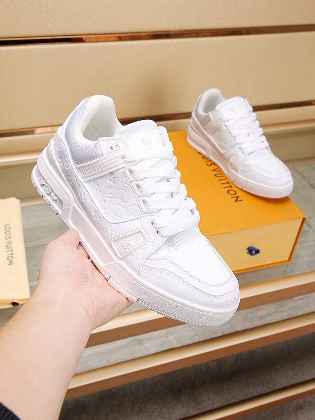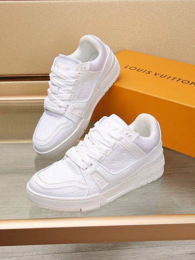 工厂p Loui* Vuitto* 独家实拍同步上线原版本 原鞋鞋开发,上脚非常舒适 做工精细 鞋面由头层牛皮制成,侧边饰有品牌Logo标志及签名,垫脚聚米微料加原版内里,脚感超舒适。原厂特供原版双色Tpu组合大底。固特异缝合锁边。Size:38-45 45定做不退换 DDD