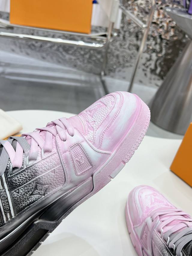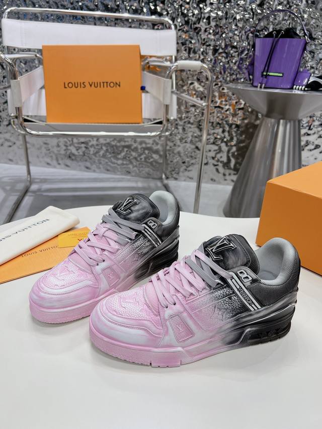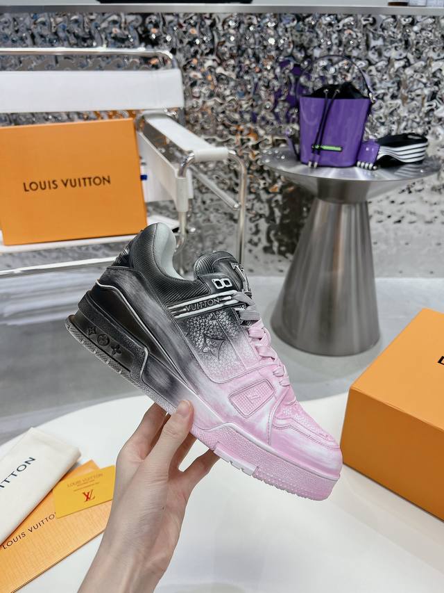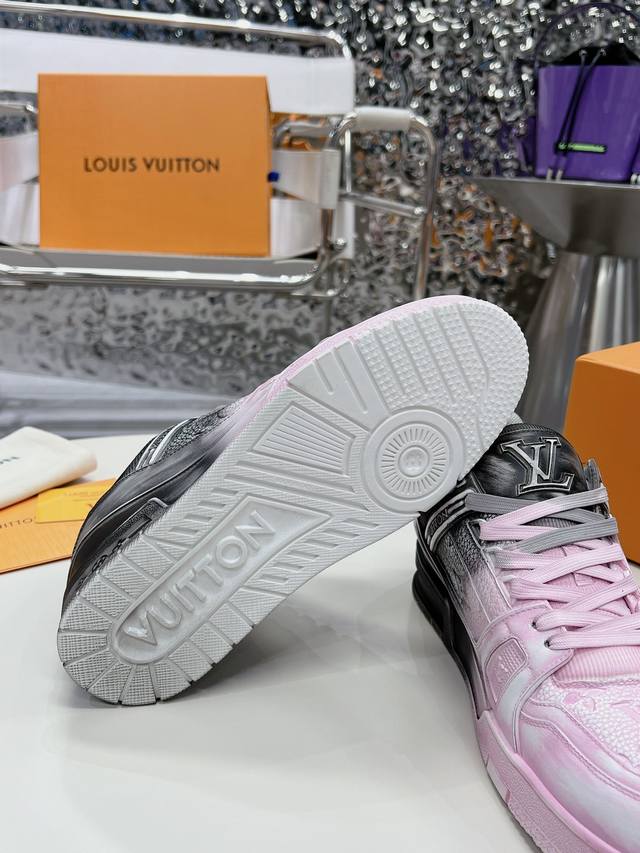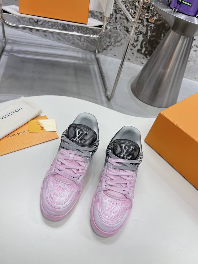 / 情侣款 新款 Lv水洗板鞋,顶级版本水洗鞋,Lv Trainer 篮球系列运动鞋,官网限定款复古篮球运动鞋!原版1:1精准复刻、所有细节都完美无瑕! 鞋面用料独