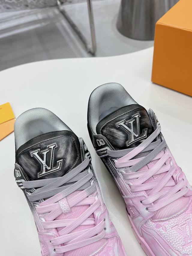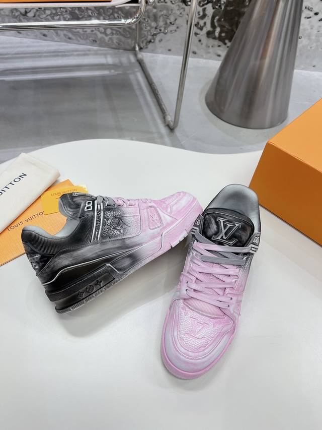 情侣款 新款 Lv水洗板鞋,顶级版本水洗鞋,Lv Trainer 篮球系列运动鞋,官网限定款复古篮球运动鞋!原版1:1精准复刻、所有细节都完美无瑕! 鞋面用料独
