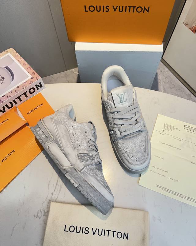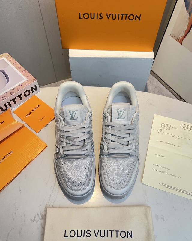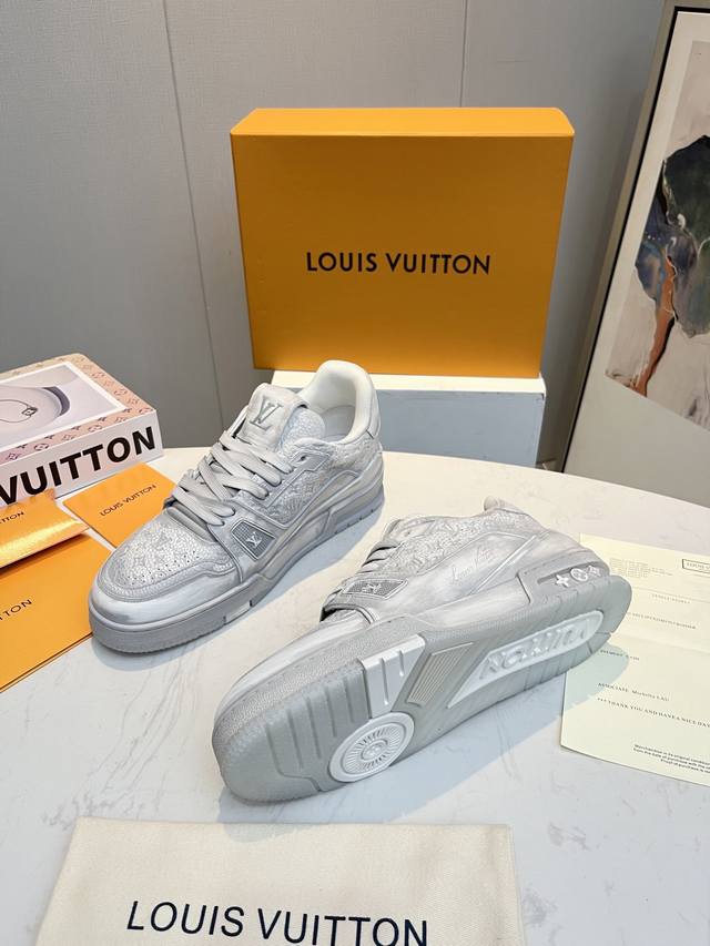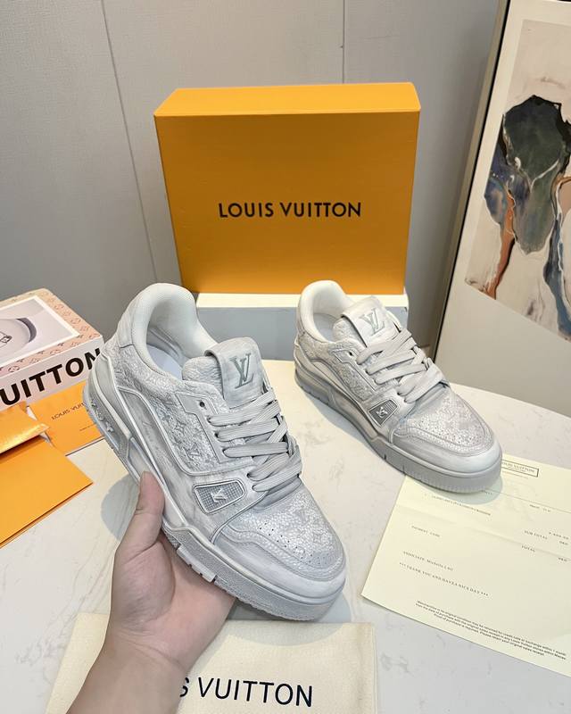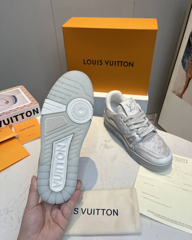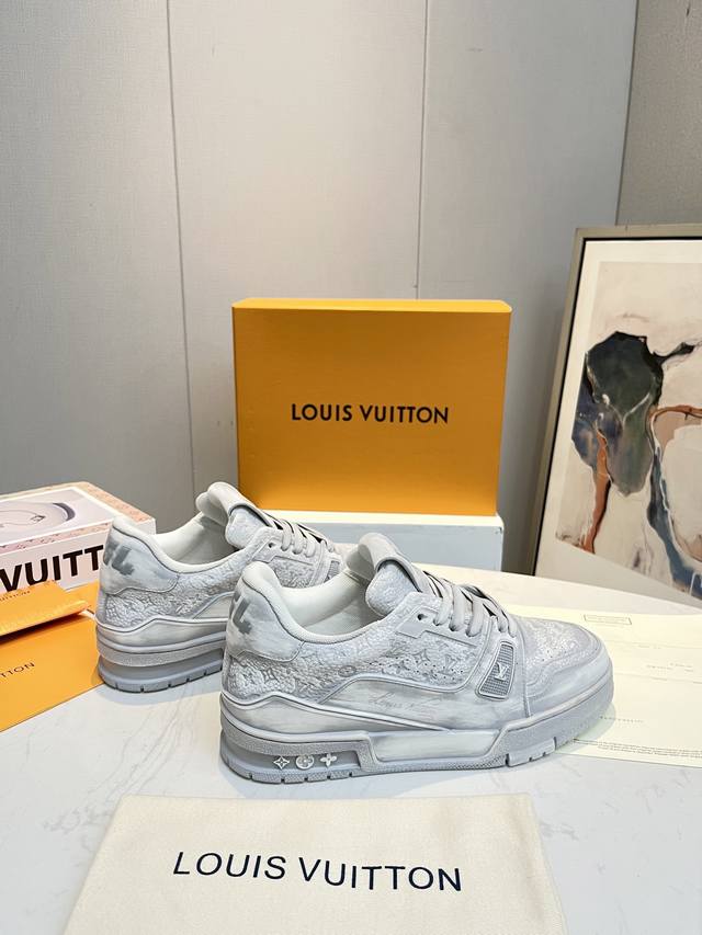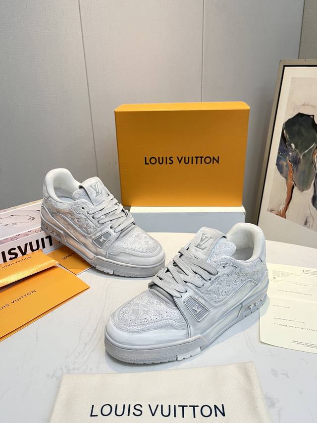 情侣款Lv水洗板鞋,顶级版本水洗鞋,Lv Trainer 篮球系列运动鞋,官网限定款复古篮球运动鞋!原版1:1精准复刻、所有细节都完美无瑕! 鞋面用料独家定制头