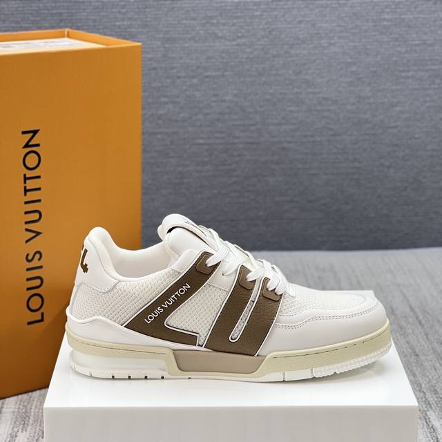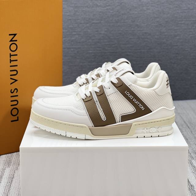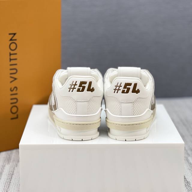 新配色 情侣款Trainer运动鞋,本款 Trainer 运动鞋取材柔软粒面小牛皮,呈现纯净色调,后部#54标识追溯品牌诞生于1854年,设计师手写体品牌标识点缀一侧,Virgil Abloh亲自操刀设计,非常具有纪念价值的一款运动鞋,全新Louis Vuitton Trainer Sneaker Low休闲运动文化百搭篮球板鞋 Size:39-44 38.45定制