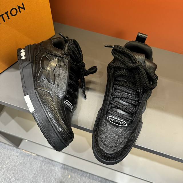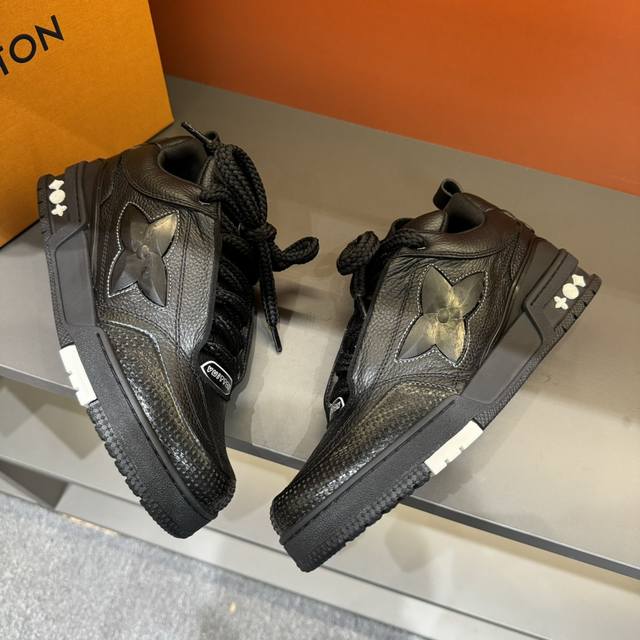 码数38-45 L*Skate 运动鞋-厚底系带面包运动鞋,采用头层牛皮制成,鞋头撞色橡胶包裹,粗鞋带系带设计,侧面带 Monogram 大印花, 鞋舌及后跟”