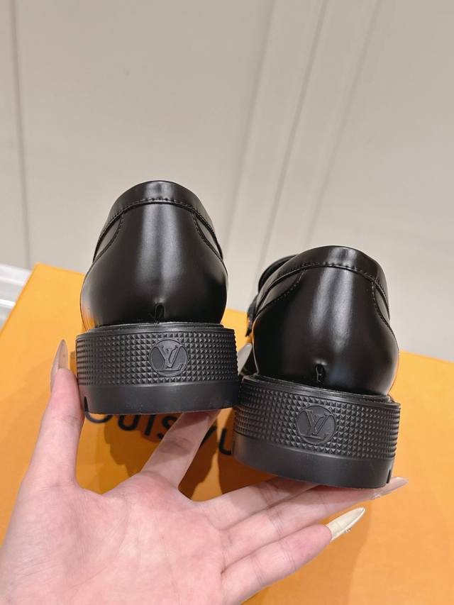 秋冬秀款乐福鞋|专柜同步上新 终于等到这只完美楦型!圆头设计复古又灵动 厚底Tpu隐形增高 走路如履云端 从内到外都是牛皮 触感软过云朵 经典老花扣带搭配金属字母扣 每个细节都长在我的审美上 原版倒模1:1还原秀场形态 拼色皮料在光下泛起细腻光泽 不挑脚型的神仙单品 上脚瞬间拉长腿部线条 慵懒与精致并存的松弛感 才是当代法式穿搭的终极奥义 #路易威登2025秋冬 #乐福鞋天花板 #高级感穿搭 面料:进口小牛皮 内里:牛皮 垫脚:进口牛皮 鞋底: 意大利真皮底 码数:35-41、 40.41定制不退换