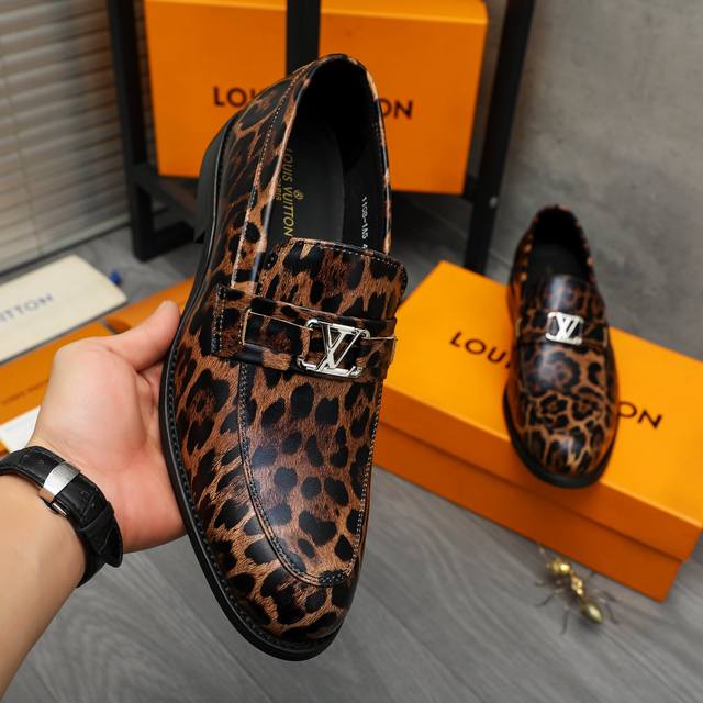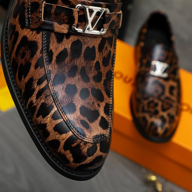 / 调工厂p价 商品商标:Lv 路易威登 商务套脚皮鞋 正码码数: 39-45 45定做不退换 商品材料:精选豹纹牛皮鞋面 牛皮内里 原版橡胶大底