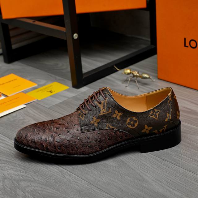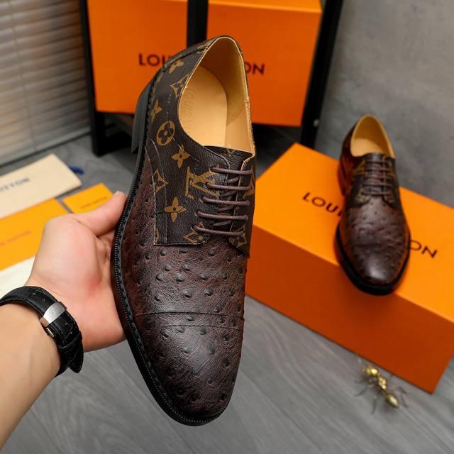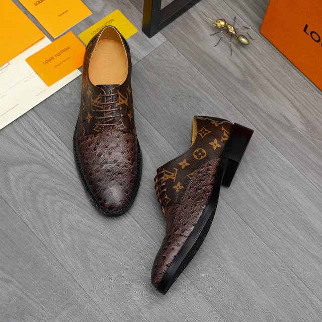 / 调工厂p价 商品商标:Lv 路易威登 商务正装皮鞋 正码码数: 39-45 .45定做不退换 商品材料:精选驼鸟纹牛皮拼接鞋面 牛皮内里 原版橡胶大底