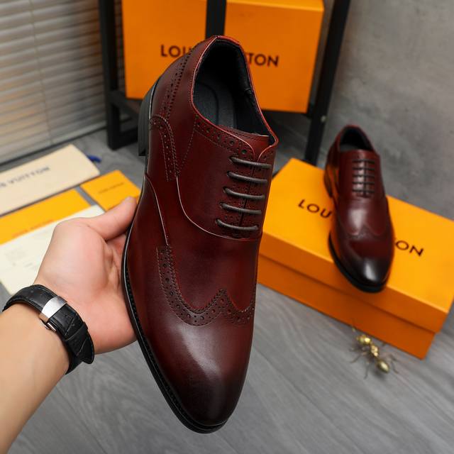 / 调工厂p价 商品商标:Lv 路易威登 商务正装系带皮鞋 正码码数: 37-46 37.46定做不退换 商品材料:精选擦色优质牛皮鞋面 猪皮内里 橡胶大底