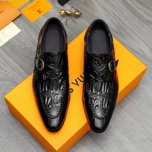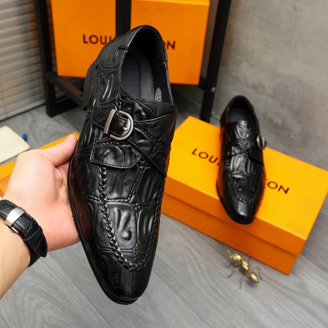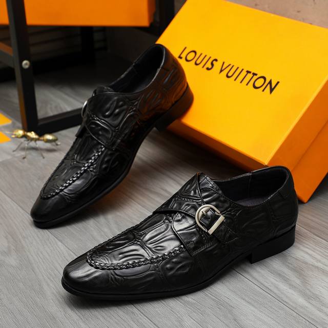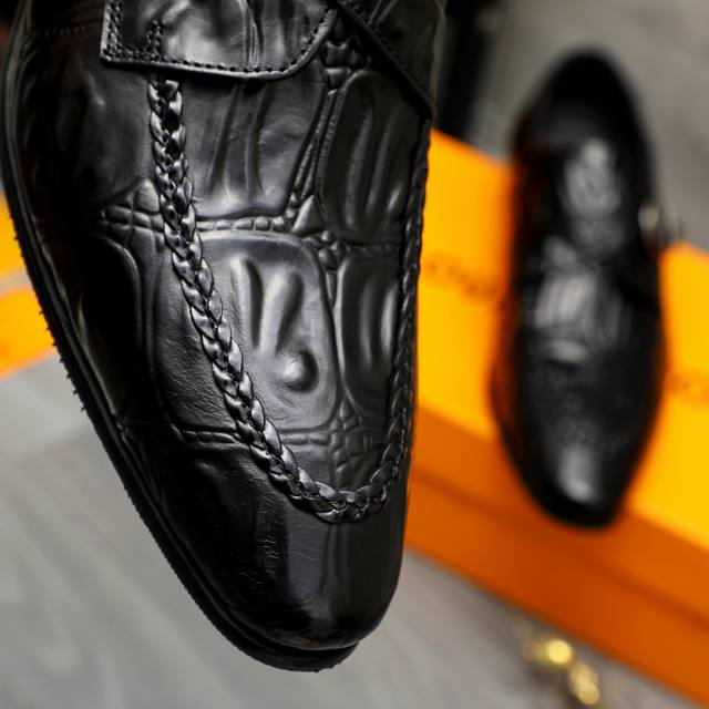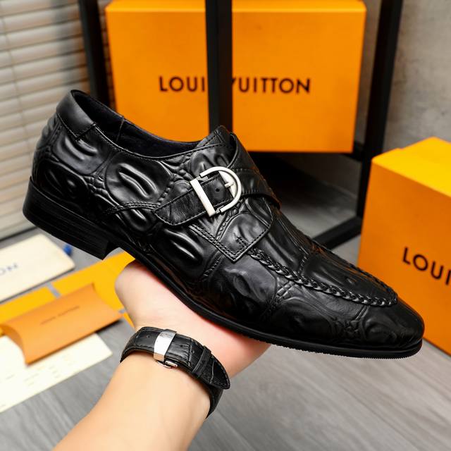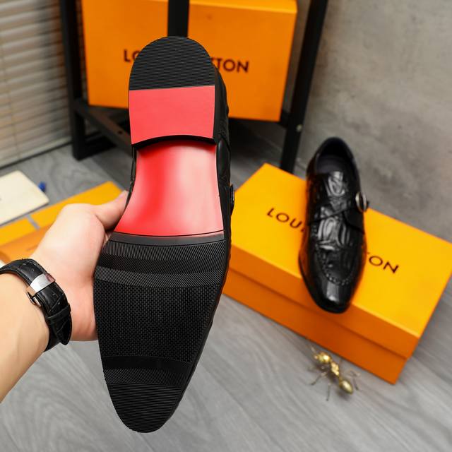 调工厂P价 男装男鞋 运动原单商品商标:Lv 路易威登 商务套脚皮鞋 正码码数: 37-46 商品材料:精选优质鳄鱼纹牛皮鞋面 猪皮内里 橡胶大底