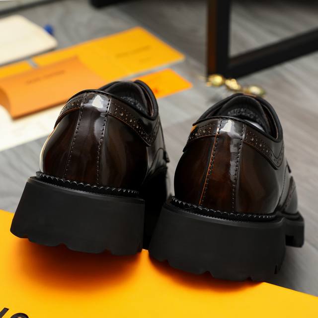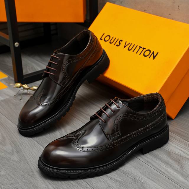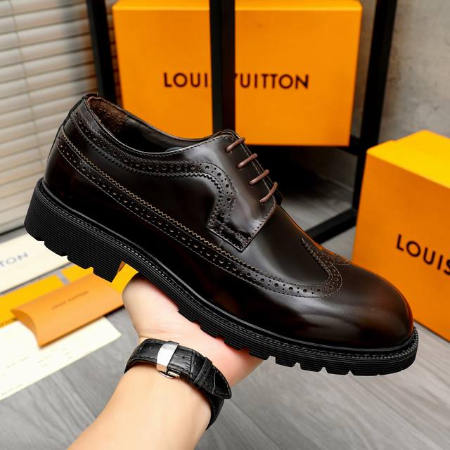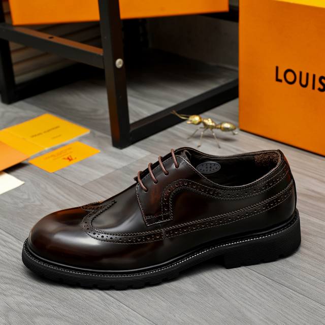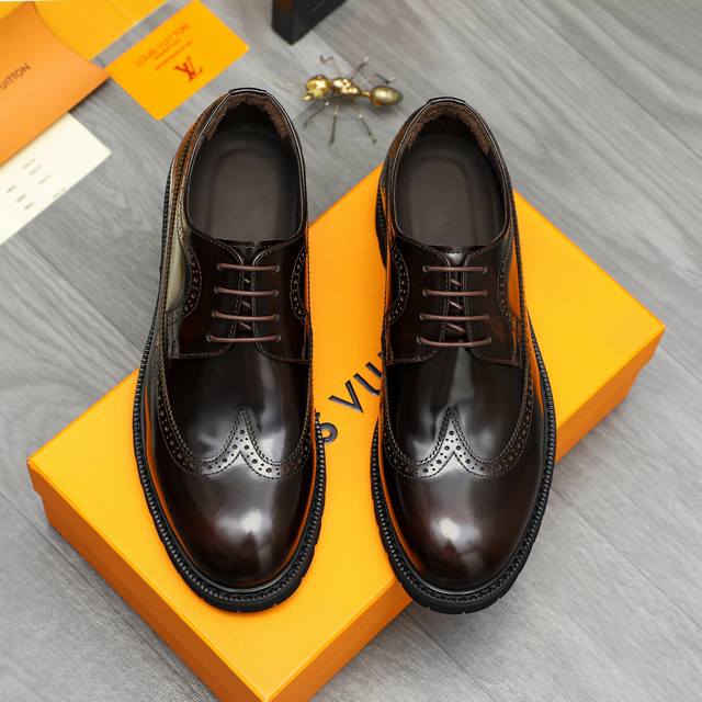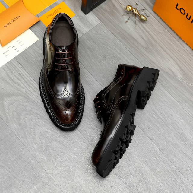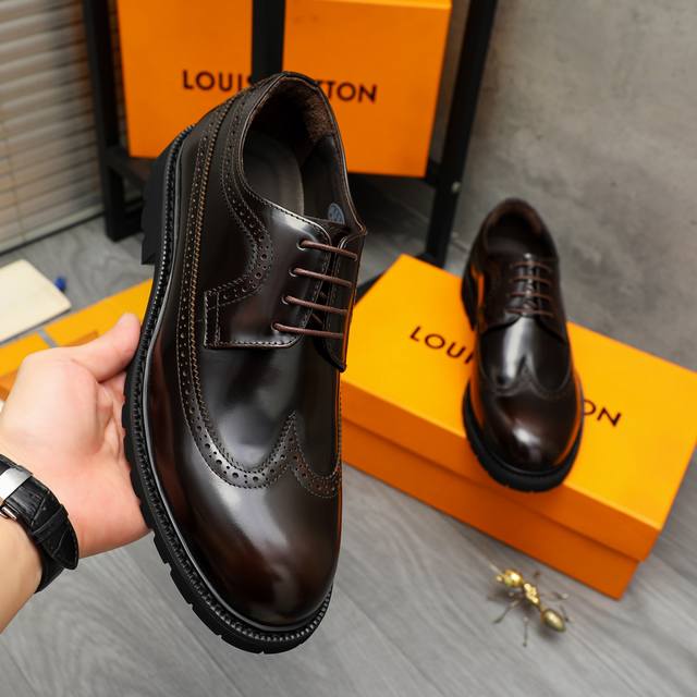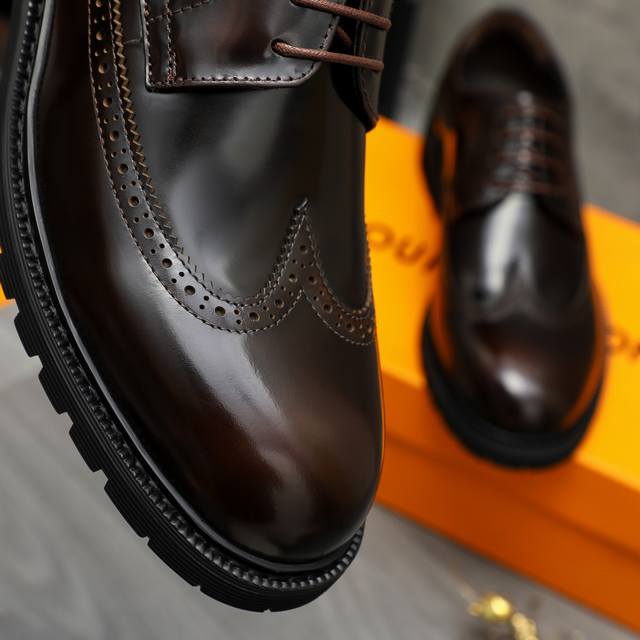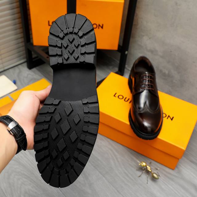 调工厂P价 男装男鞋 运动原单商品商标:Lv 路易威登 商务正装系带皮鞋 正码码数: 37-46 商品材料:精选优质珠光擦色牛皮鞋面 猪皮内里 橡胶大底