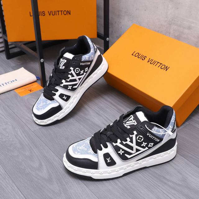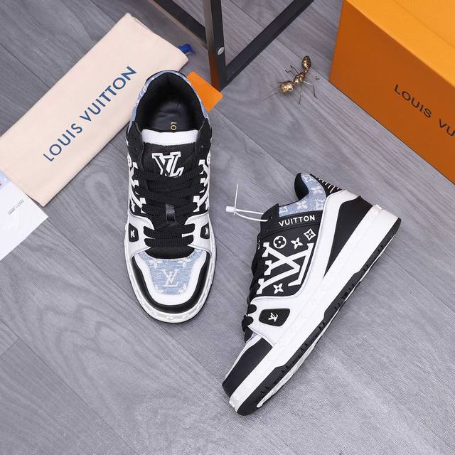/ 调工厂p价 男装男鞋 运动原单 商品商标:Lv 路易威登 休闲系带男鞋 正码码数: 38-44 商品材料:精选经典牛仔织花拼接牛皮鞋面 透气网内里 原版橡胶大底