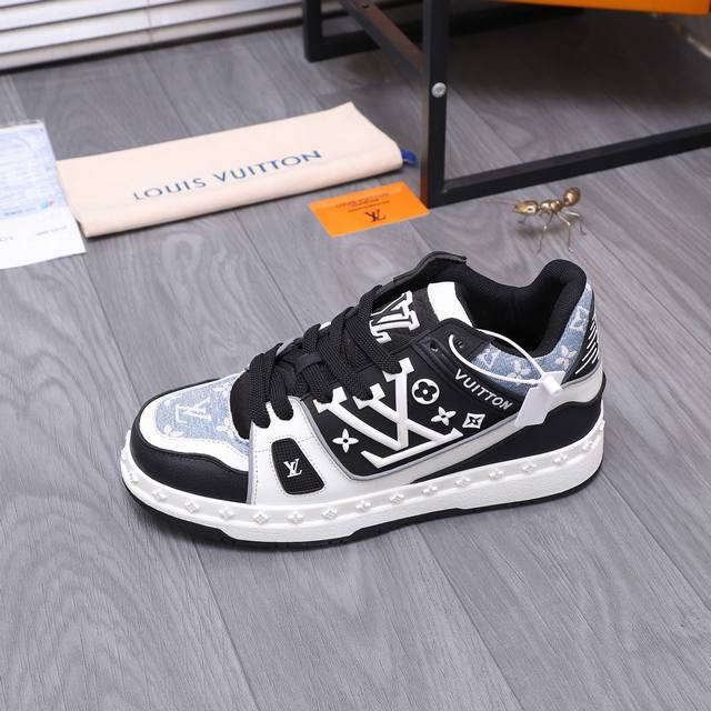 调工厂p价 男装男鞋 运动原单 商品商标:Lv 路易威登 休闲系带男鞋 Ddd 正码码数: 38-44 Ddd 商品材料:精选经典牛仔织花拼接牛皮鞋面 透气网内里 原版橡胶大底 DDD